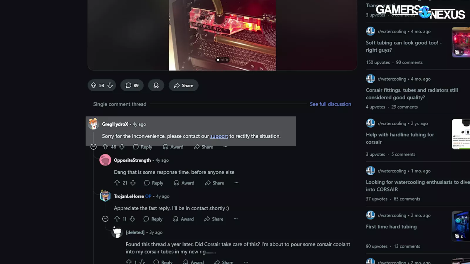 So clearly something is wrong. Or not “clearly,” actually, seeing as it’s not clear. The tubing looks gross. It shouldn’t look gross. The spare piece in the accessory kit doesn’t look gross. The coolant is even Corsair’s own XL8 clear fluid, making it even more inexcusable.