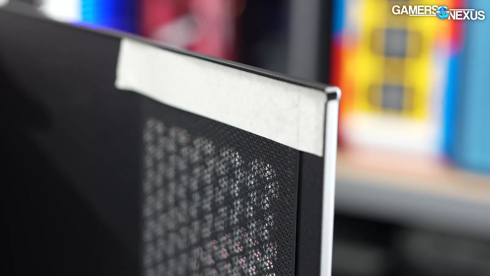 Opening up the swinging side panel, we noticed masking tape on the dust filter, which we’re actually okay with as it’s to keep it in place during shipping and is removable.
