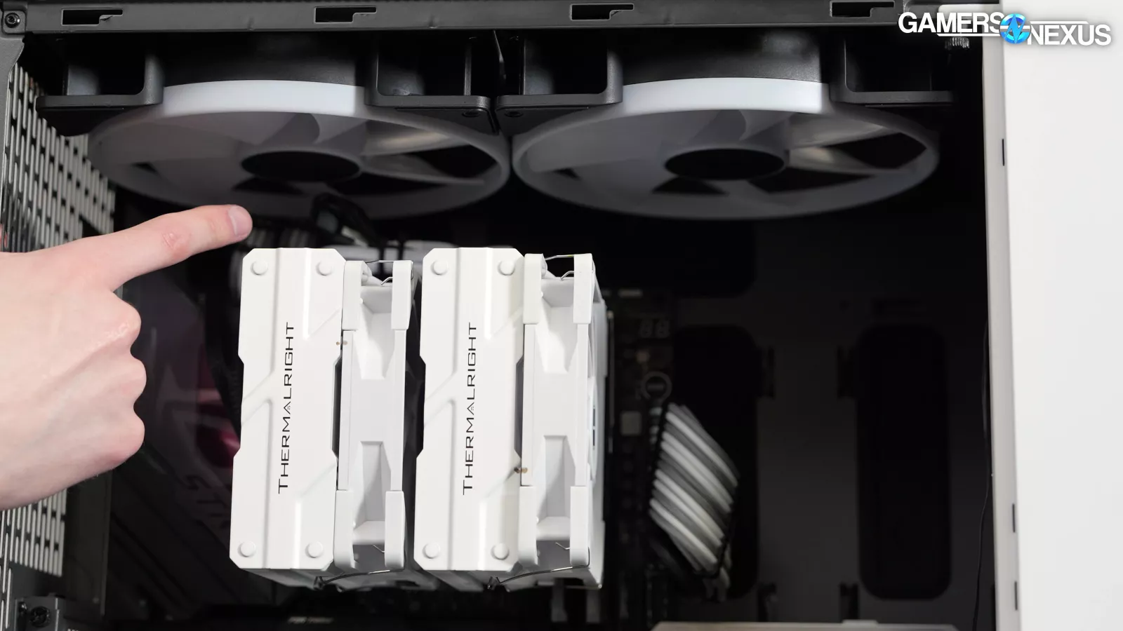 For our CPU cooler, we’re still using an air cooler in the Thermalright Peerless Assassin, which we chose because it holds pressure really well.