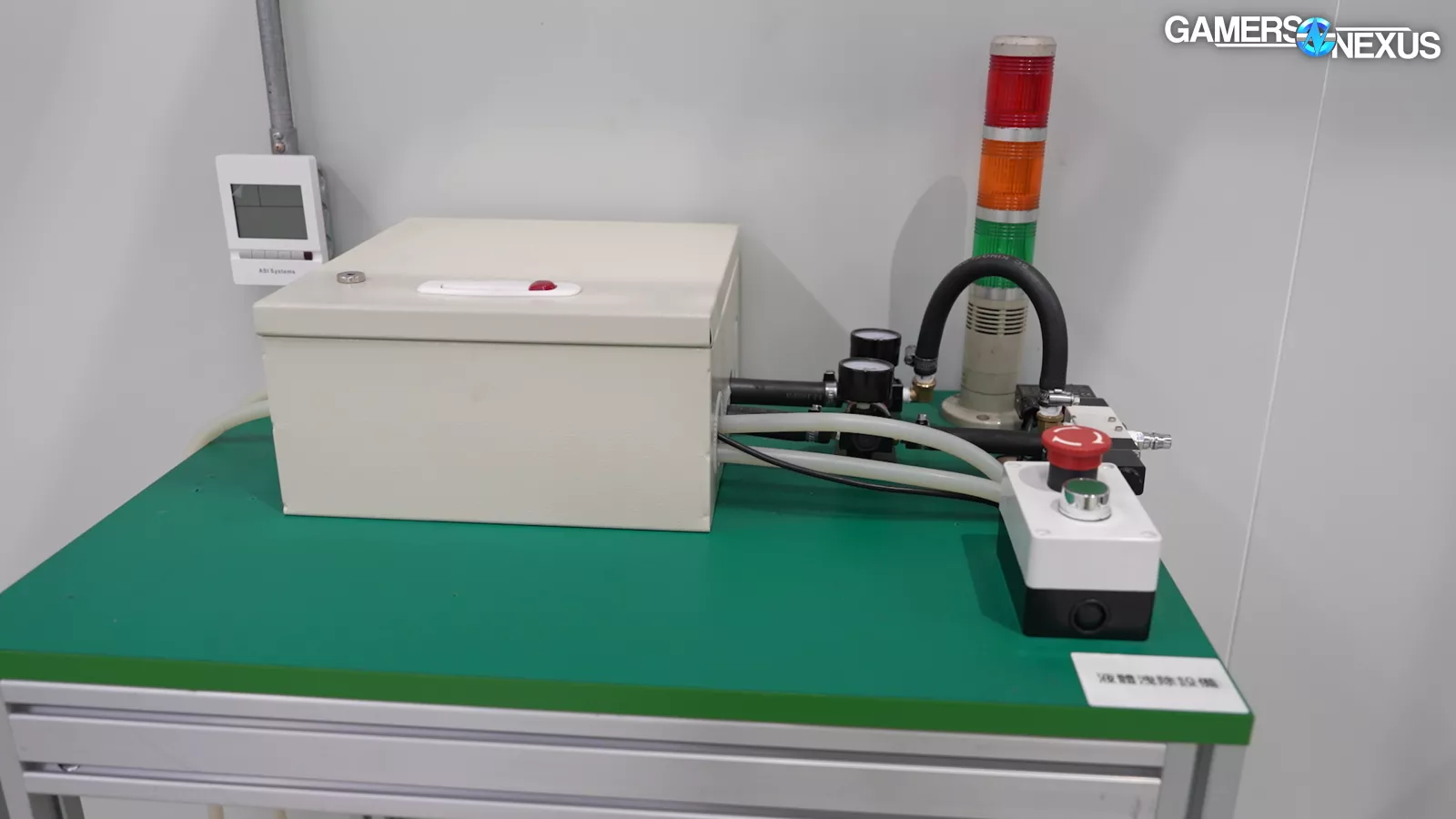 The water pumps through these huge hoses, with pressure gauges placed throughout to help check for leaks. They’re also checking the water temperature here. This can be configured to test water cooling for entire server racks -- or multiple -- for complex systems.