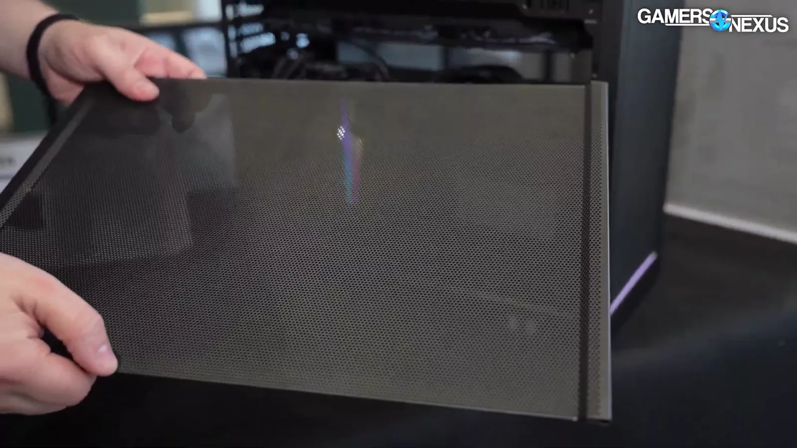 Taking a look at the mesh variant, the case’s top panel has 70% whole porosity and the thickness of the steel means that it doesn’t end up being flimsy.