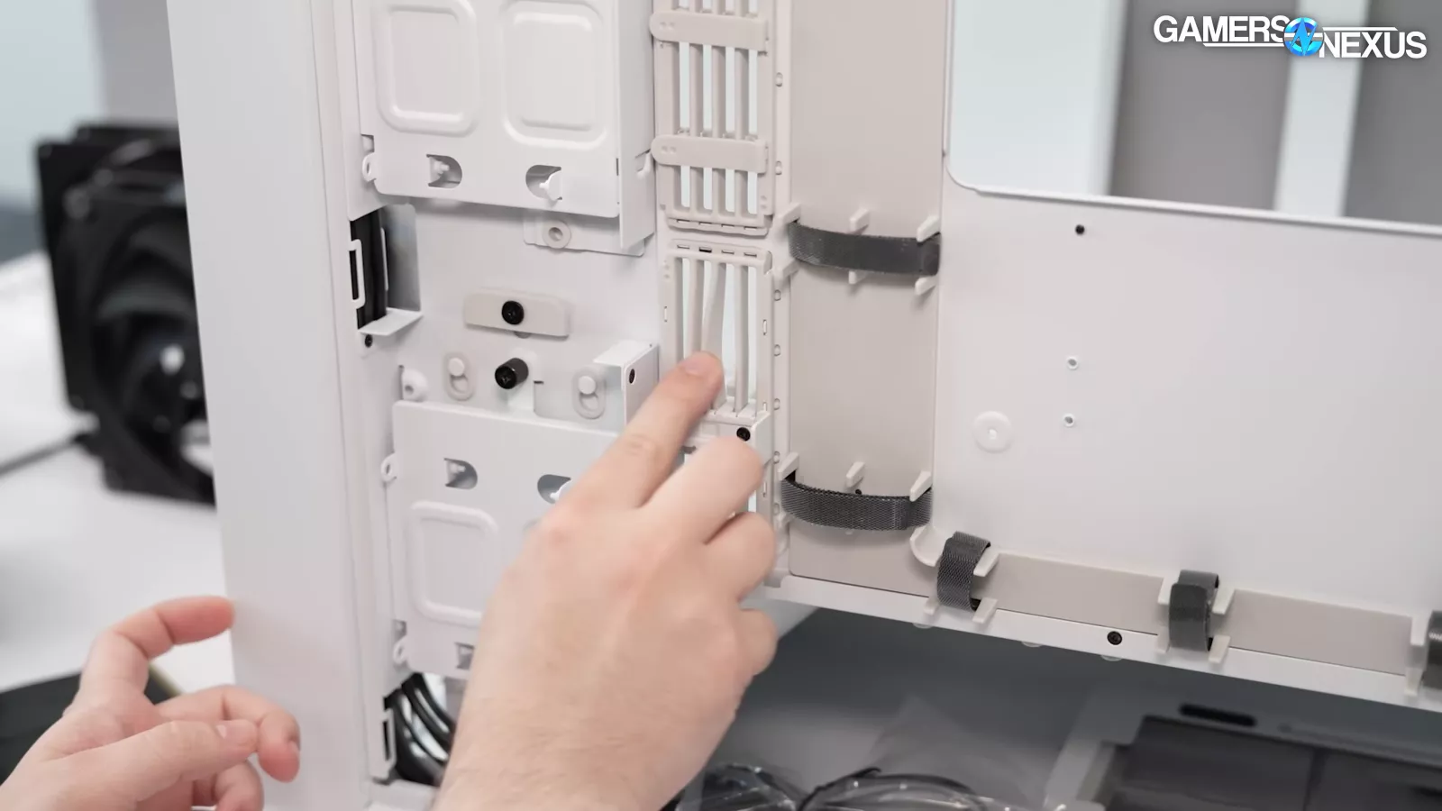 HAVN learned from the HS 420 on the 3 and ½-inch drive support and improved its implementation. There are 2 bays on the back side of the case for those drives and they can be removed. HAVN also changed how it handles the grommets with the case. The string-like material in between is the same but there’s now a little rubber tab that helps to prevent it from popping out by accident once it’s filled with cables. The point here is that HAVN is trying to learn from what they’ve done with the HS 420 and to refine their designs.