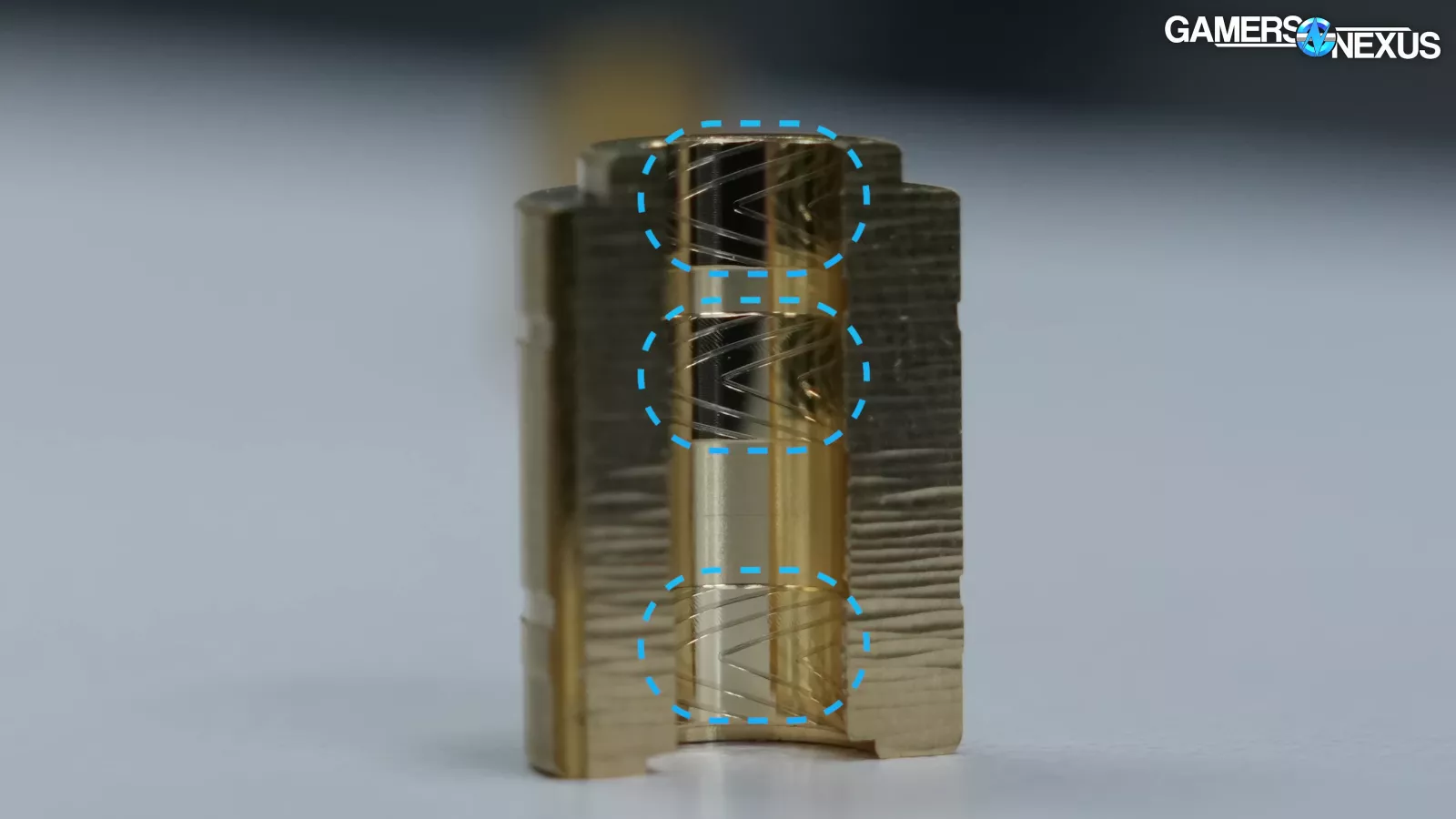 Internally looking at the 15mm-tall bearing for the 180mm fan, you can see 3 grooved channels. In our bearings-factory tour, we learned that the grooves are part of the mechanism that allows the fluid to circulate to keep that pressure even across the bearing. That’s supposed to be what's special here but we don’t test bearings individually, but the idea is that 3 channels are supposed to help with the stability of the fluids across the bearing.