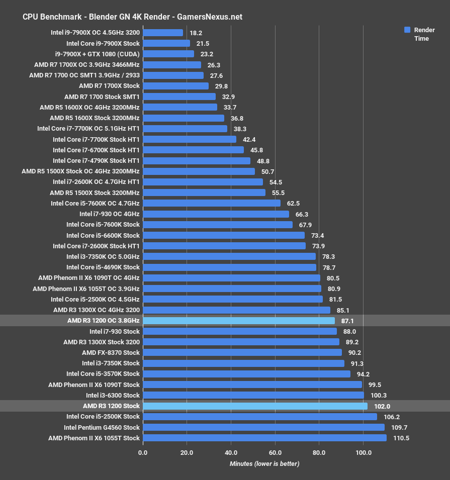 Blender CPU Benchmark – R3 1200 vs. R5 1600X, G4560, etc.