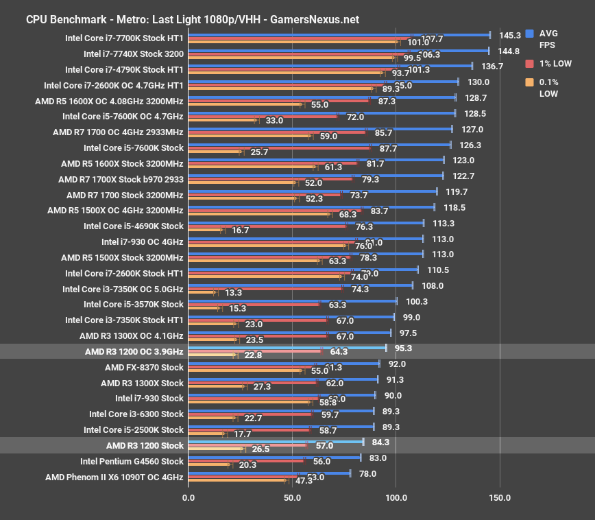 Metro: Last Light Benchmark – R3 1200 vs. 1300X