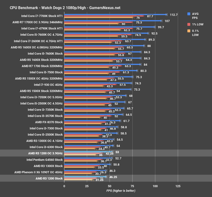 Watch Dogs 2 Benchmark – R3 1200 vs. 1300X, G4560, i3-7350K, etc.