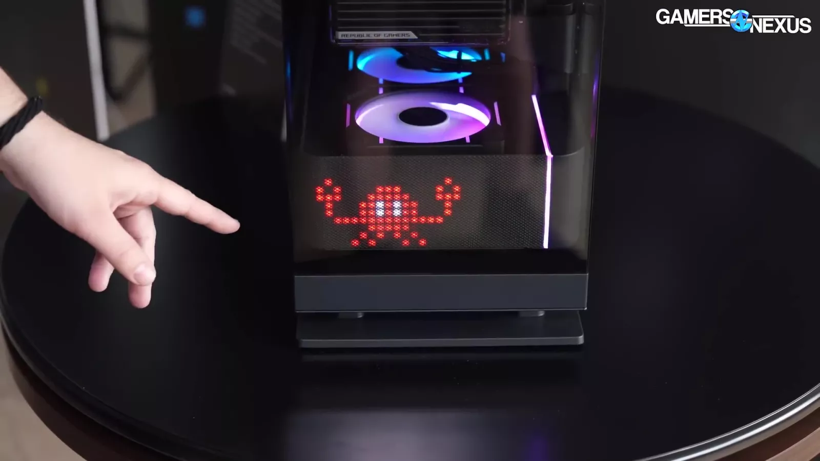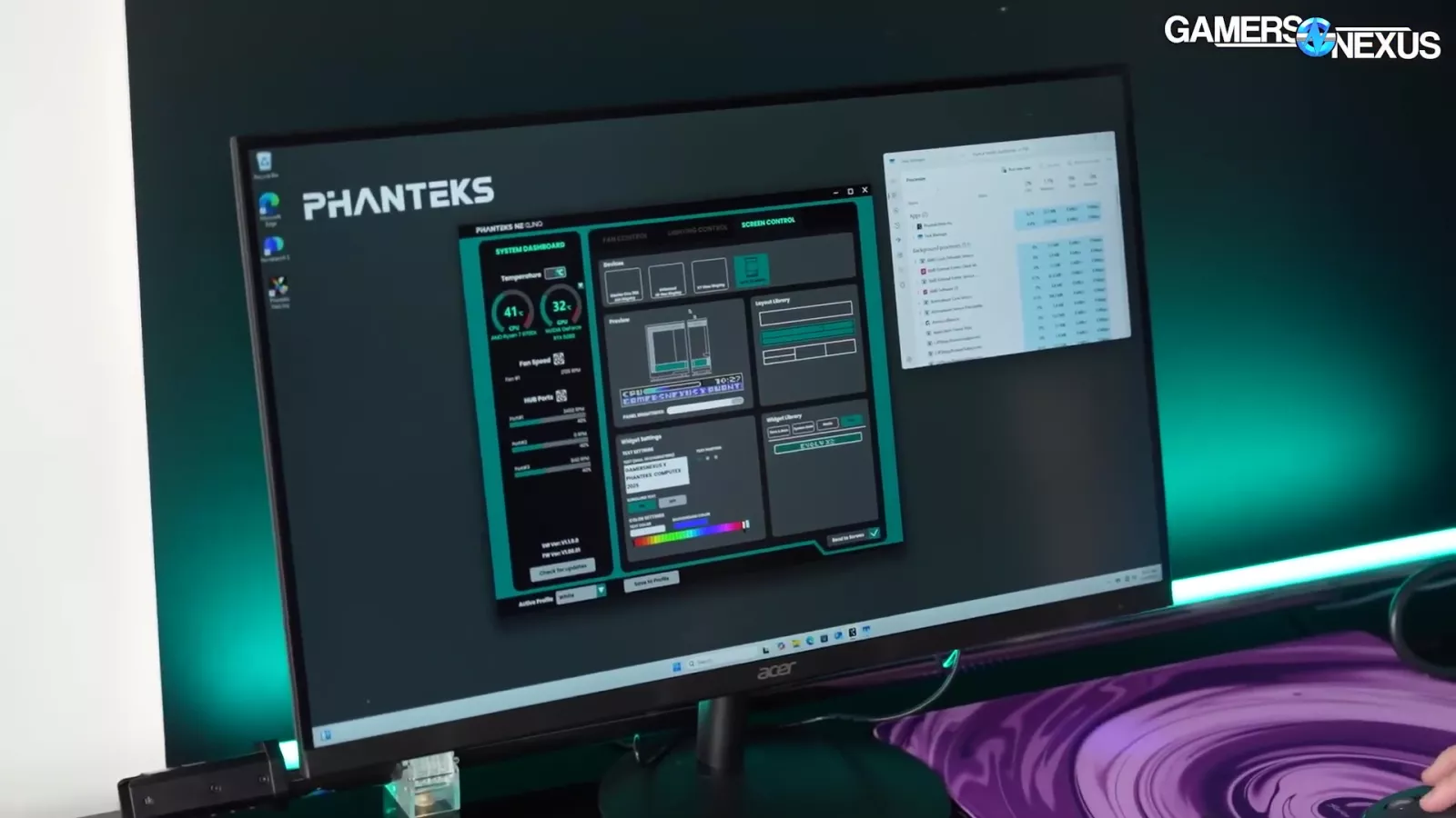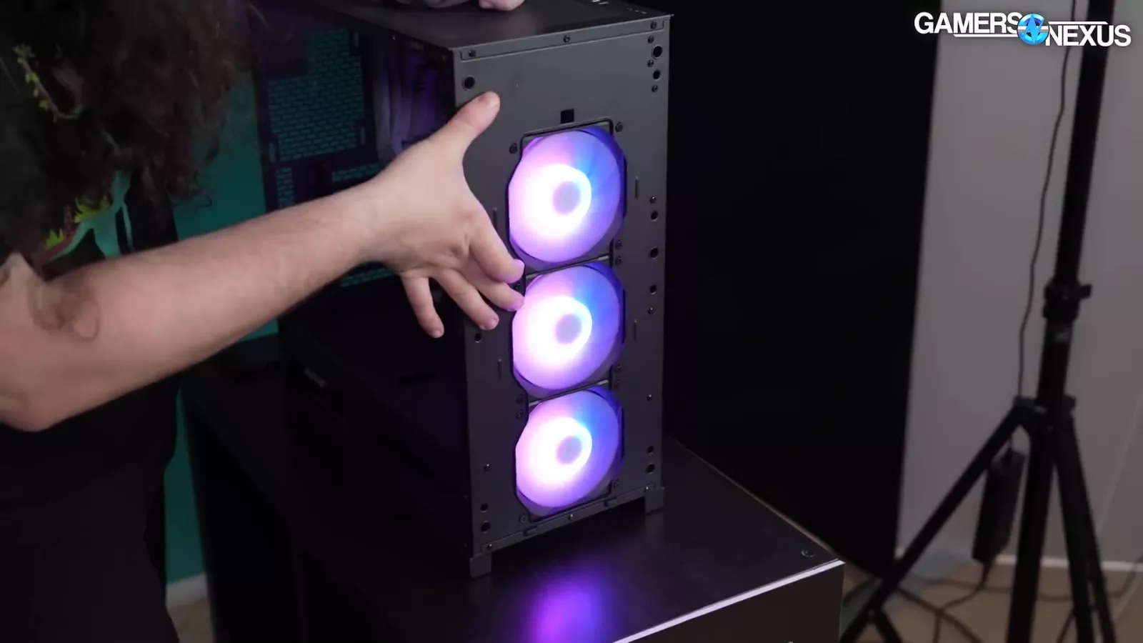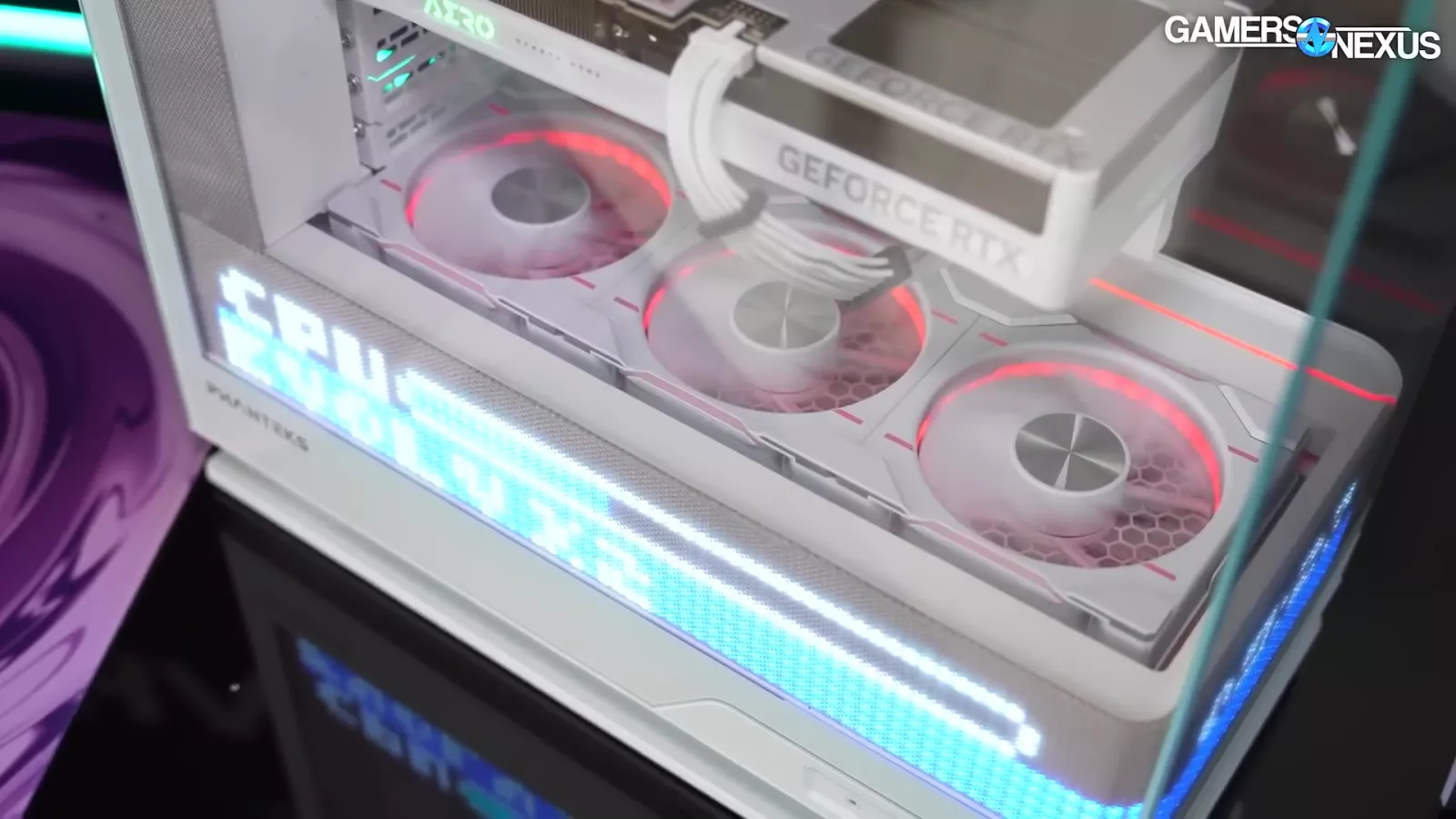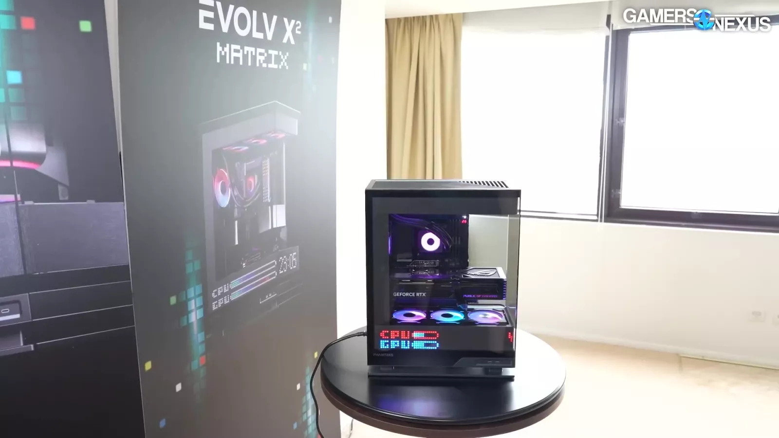 Phanteks also has software that allows you to reconfigure what the LEDs display. When we got to the company’s suite, it had been programmed to say, “Gamers Nexus here,” which was cool to see.