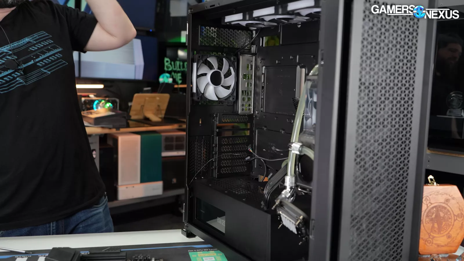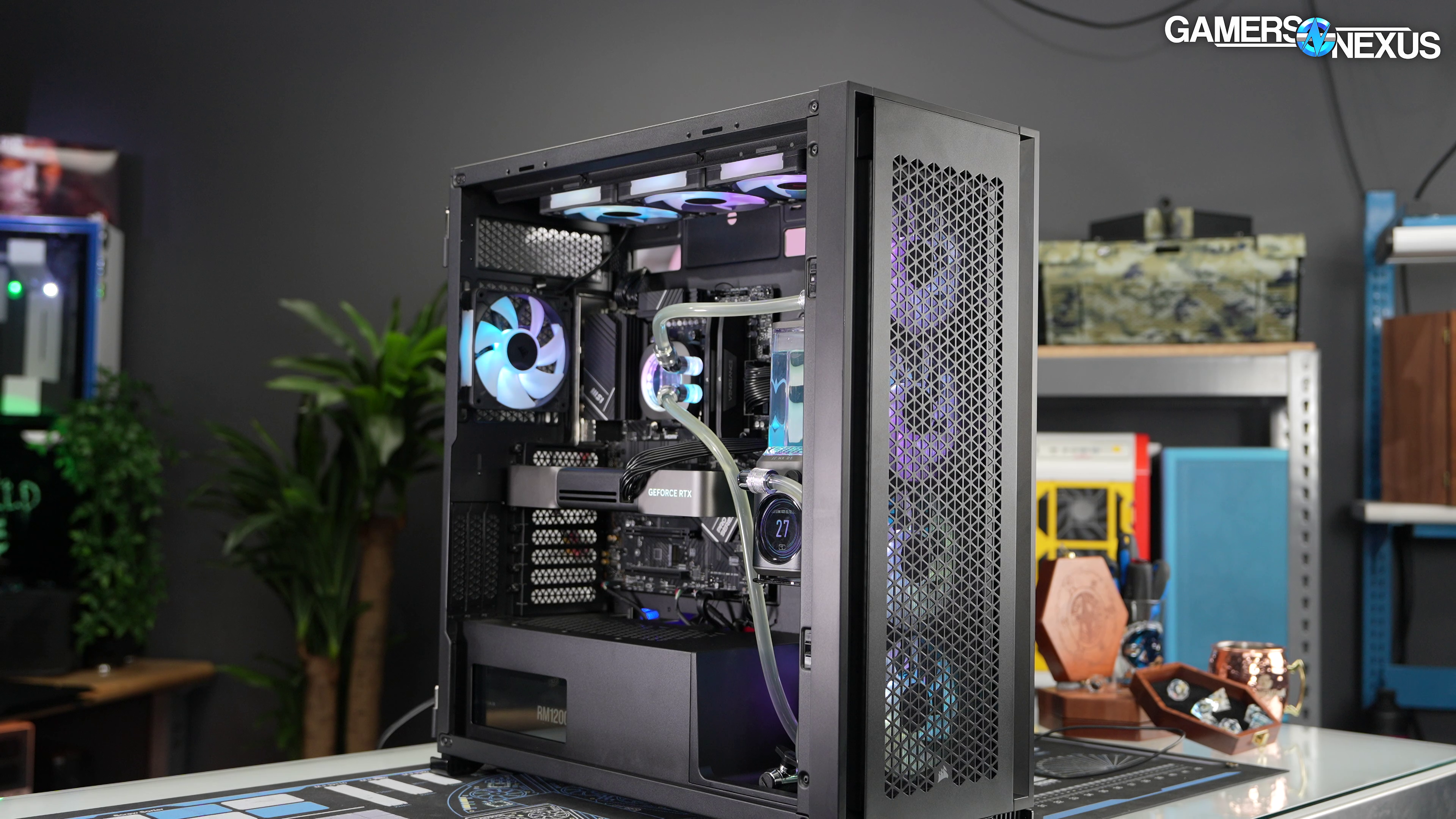 - The fans in the system don’t ramp up until the liquid-cooled CPU gets warm, which means the air-cooled GPU temperature suffers
