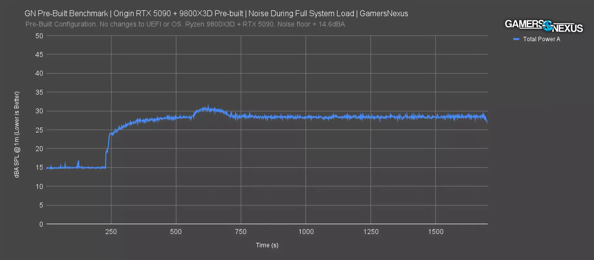 Next we’ll cover dBA over time as measured in our hemi-anechoic chamber.