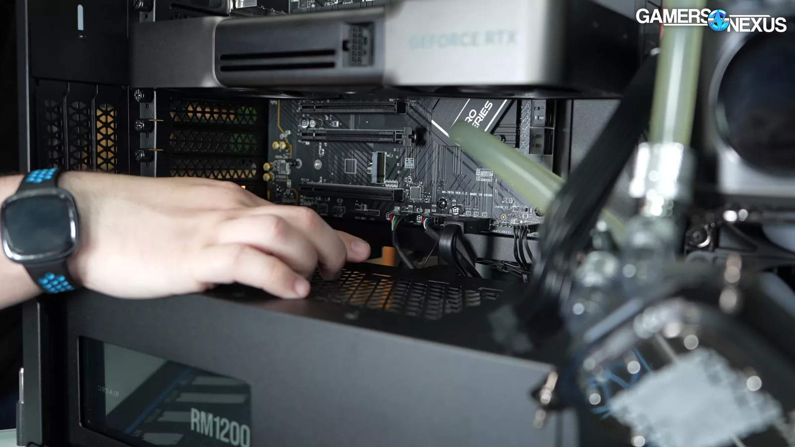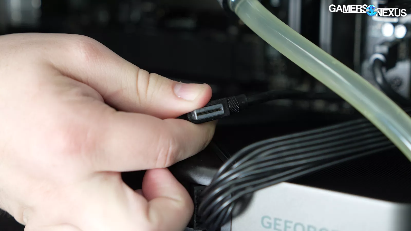 Looking at the other side of the system, we can see that the power cable leading into the 5090 is mostly seated, and isn’t a concern to us.