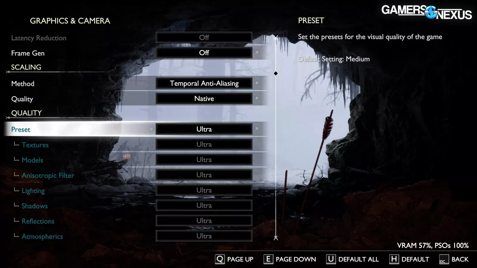 God of War ran well above 60FPS on the 9070 XT even at Ultra, which made it harder to capture generated frames, so we kept our testing brief. The ultra preset was used with motion blur, film grain, and camera shake disabled. We expected FSR to be forced when in-game framegen was enabled, but the options menu didn't reflect that, so the scaling method was set to TAA and the quality to Native for all tests (scaling cannot be explicitly disabled).