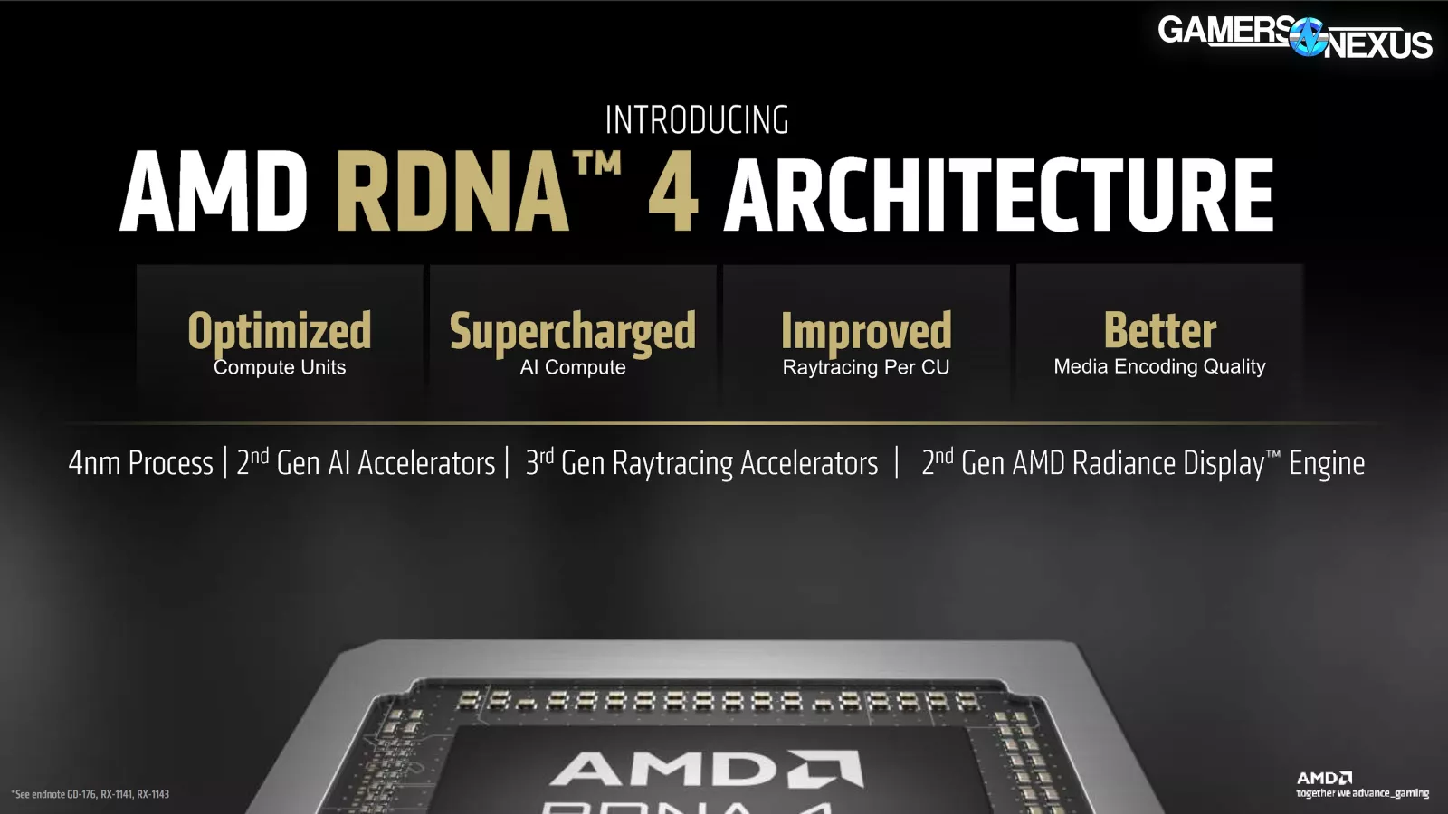 AMD says the GPUs will use its RDNA 4 architecture and will utilize a 4nm process from TSMC. AMD mostly described its specs with adjectives, which is unfortunately not particularly useful. Words like “optimized compute units,” “supercharged AI compute,” and “improved raytracing per CU” don’t tell us a whole lot. We’ll have to wait for that information.