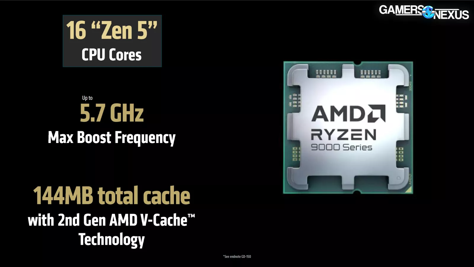 For comparison, the 9800X3D (read our review) has a total 104MB cache and $480 MSRP. The advertised boost of the 9800X3D is 5.2GHz, so the 9950X3D has a greater cache size and may benefit from higher boosting. The 144MB cache on the 9950X3D comes from the additional CCD in the configuration and could have some specific benefits that we’ll explore in our eventual review.