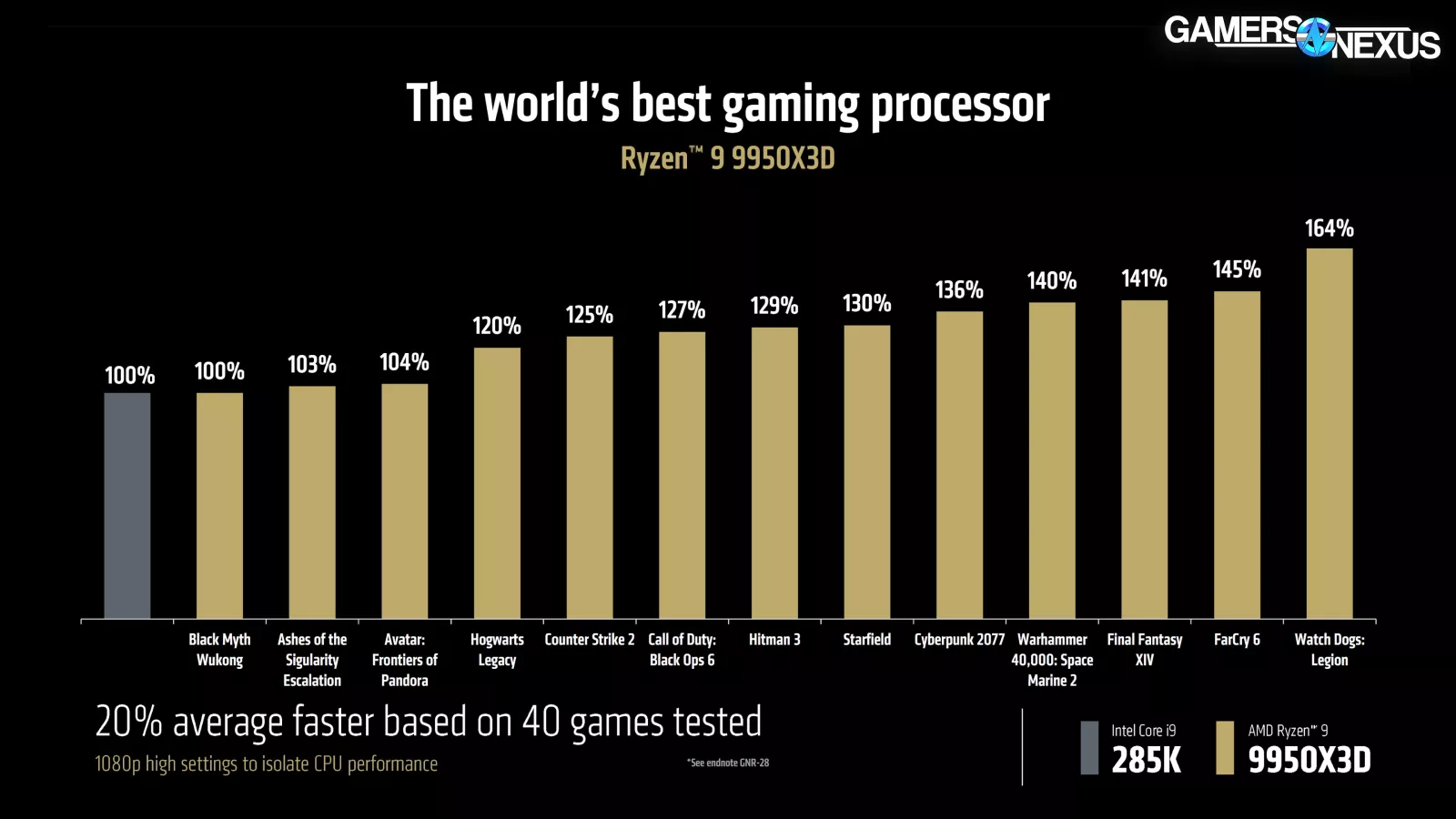 AMD also claims that it outperforms the 285K (read our review) by 20% on average across 40 games. We definitely believe this, based on numbers we ran for the 9800X3D and 285K already.