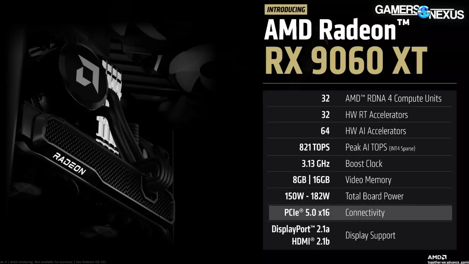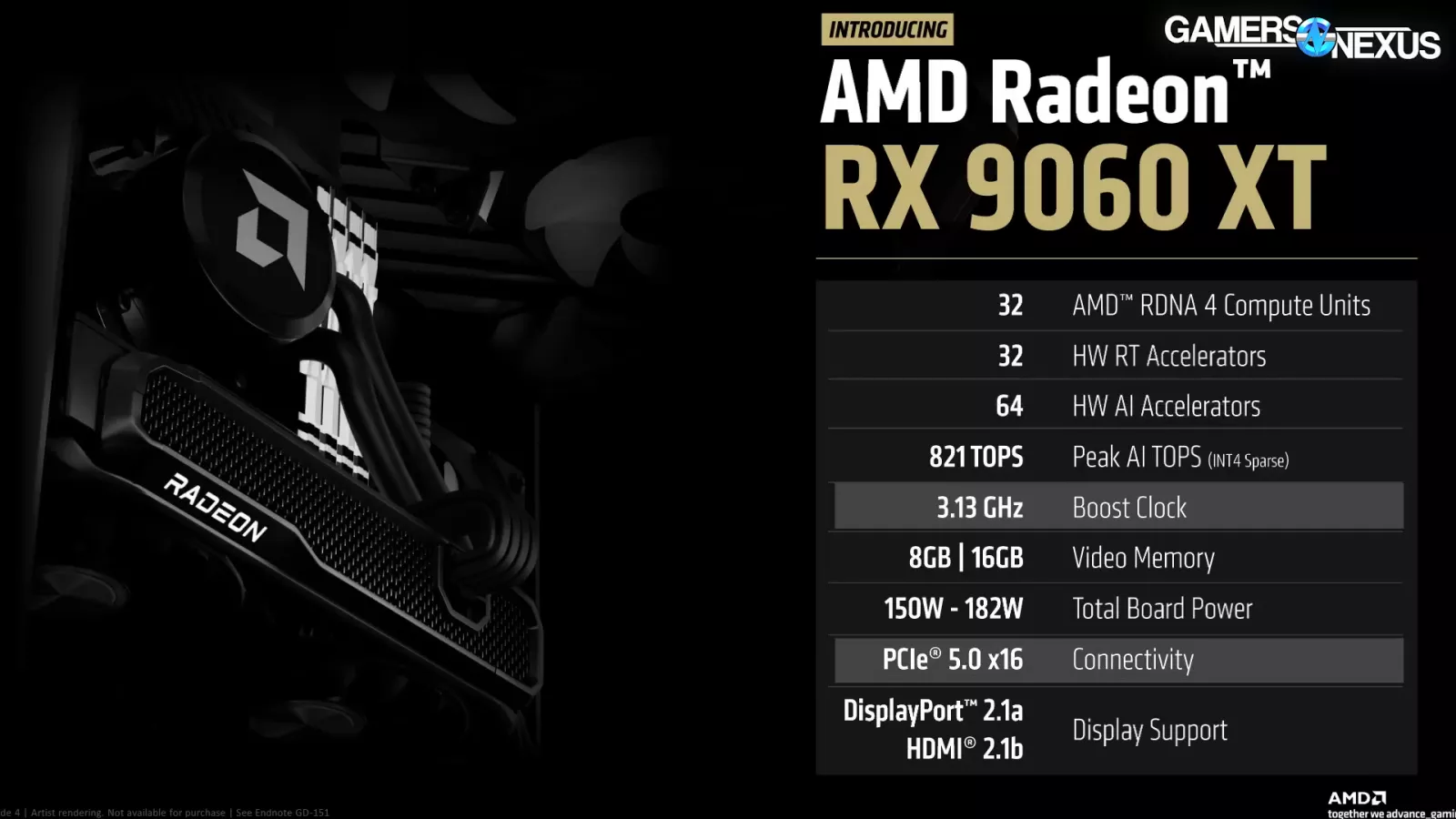 As for the features that will be shared between the two: Each will have 32 compute units, 32 hardware RT accelerators, 64 of what AMD calls its AI accelerators, and a 3.13 GHz boost clock. Both models will run PCIe gen 5.0 x16 slots, DisplayPort 2.1a, and HDMI 2.1b. AMD also lists a range of 150W-182W for board power, which explains the single PCIe 8-pin connector pictured in the rendering of the GPU. In speaking with AMD, the lower end of the range is for 8GB models.