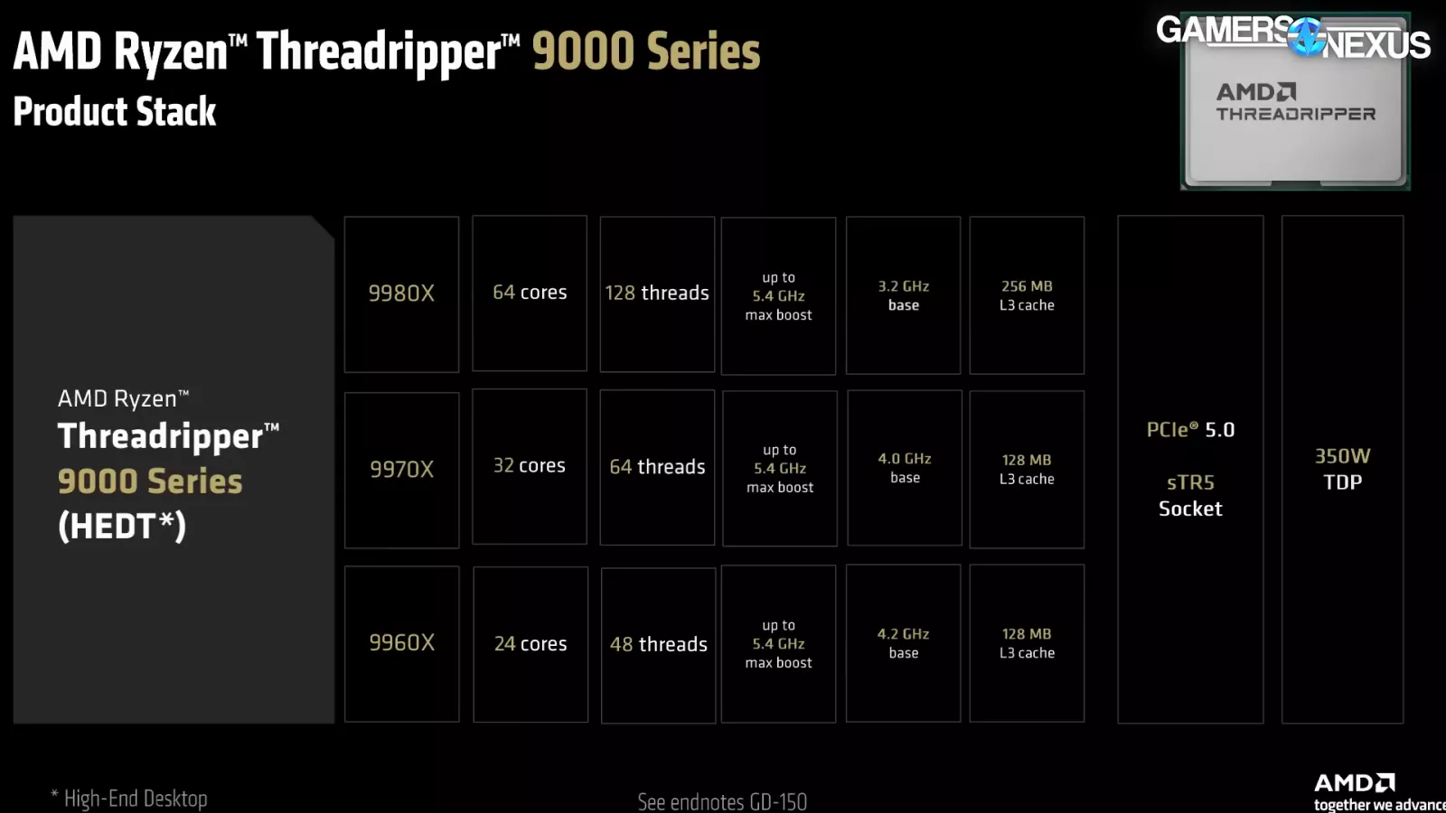 We’ll start with the standard AMD Ryzen Threadripper 9000 CPUs. This series includes the 9980X, 9970X, and 9960X.