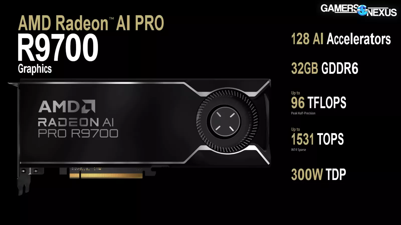 For specs, this RDNA 4 card will come with 128 AI accelerators, 32GB of GDDR6 memory, up to 1531 TOPS claimed, and a 300W TDP.
