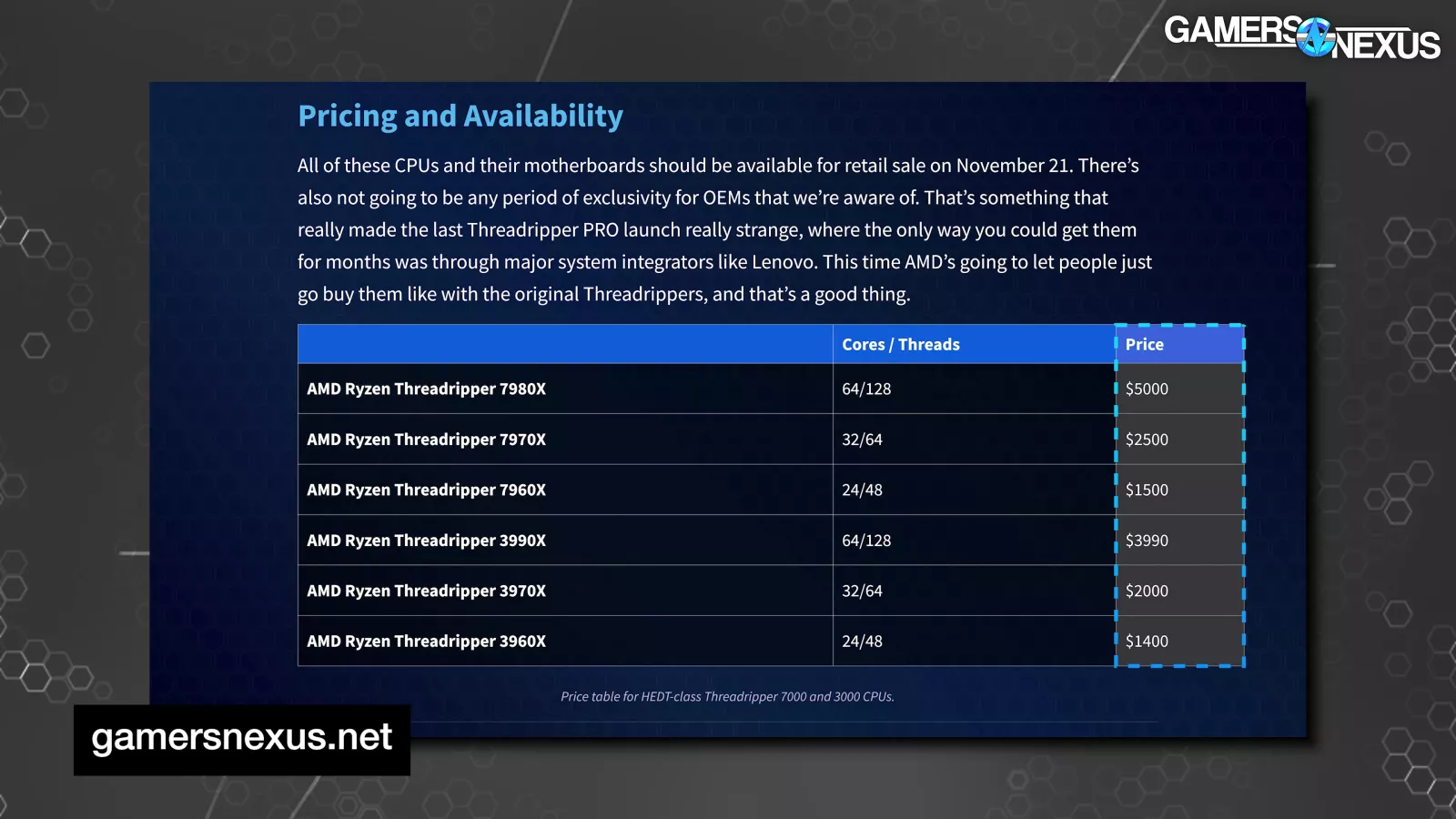 Compared to last time, prices are familiar: The 7980X was $5,000, the 7970X was $2,500, and the 7960X was $1,500. Threadripper 9000 prices are elevated from several generations back to the 3000 series, but the same as the 7000 series.