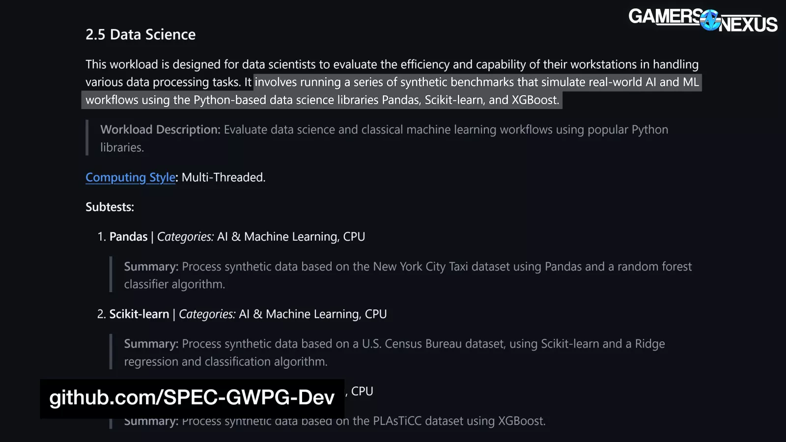 The Spec Data Science test is next. Spec says that this test “involves running a series of synthetic benchmarks that simulate real-world AI and ML workflows using the Python-based data science libraries Pandas, Scikit-learn, and XGBoost.”