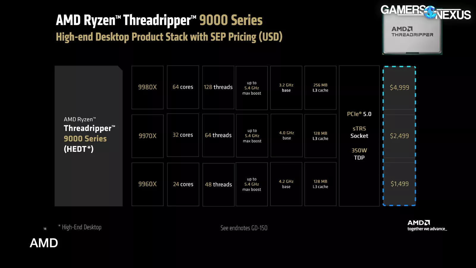 AMD is launching two versions of the Threadripper 9000 CPUs. These include the non-Pro and Pro CPUs. The Pro CPUs had an earlier embargo; today, we’re covering the HEDT (or “high-end desktop”) non-Pro Threadripper CPUs.
