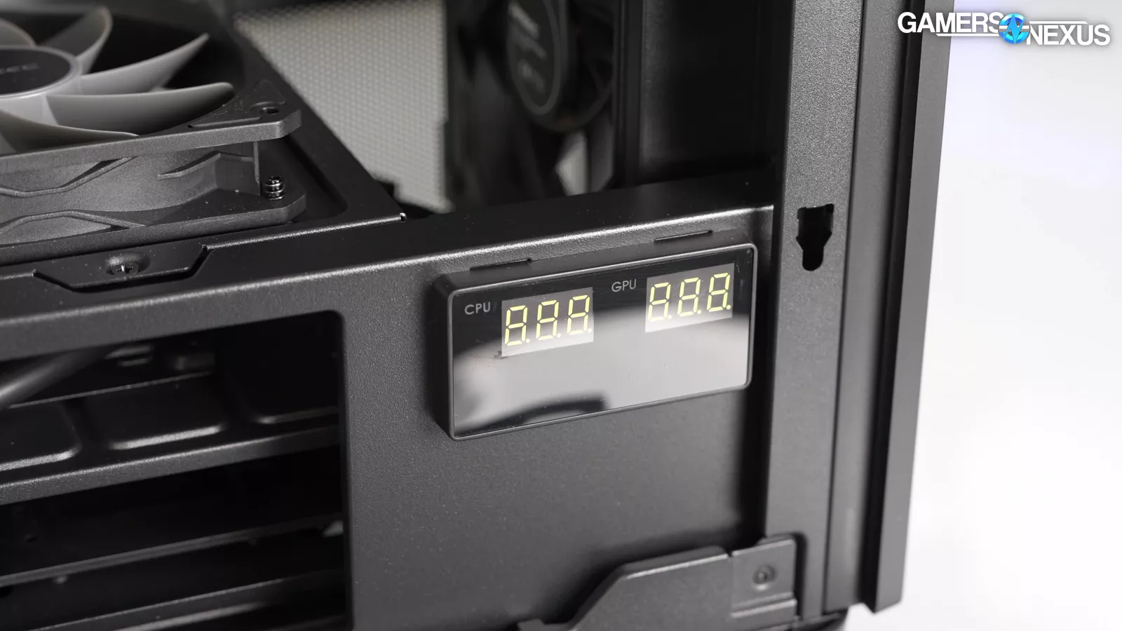There's a small 7-segment display on the side of the PSU shroud that can report CPU and/or GPU temperatures via an internal USB header. It feels like a feature from Antec's heyday back in the 2000s, especially with the retro "Antec iUnity" interface that's required to activate the display. This feature has always bordered on gimmicky and the extra software only to control it is a downside, but leaving it off renders it relatively unnoticeable on the black model, and some people might like it.