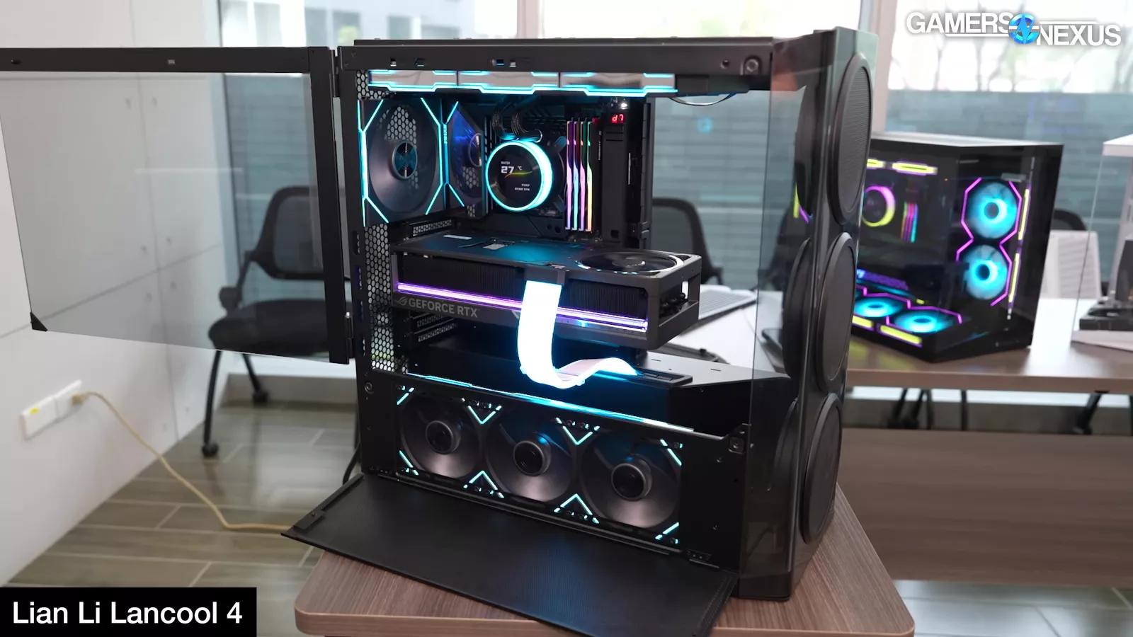 Lian Li had a relatively large breakthrough this year with its ongoing attempts to figure out how to embed fans in glass front panels. This has historically been challenging since it results in lower yields and broken glass, or in the worst case, just less surface area available for intake since a larger border has to remain for structural reasons.