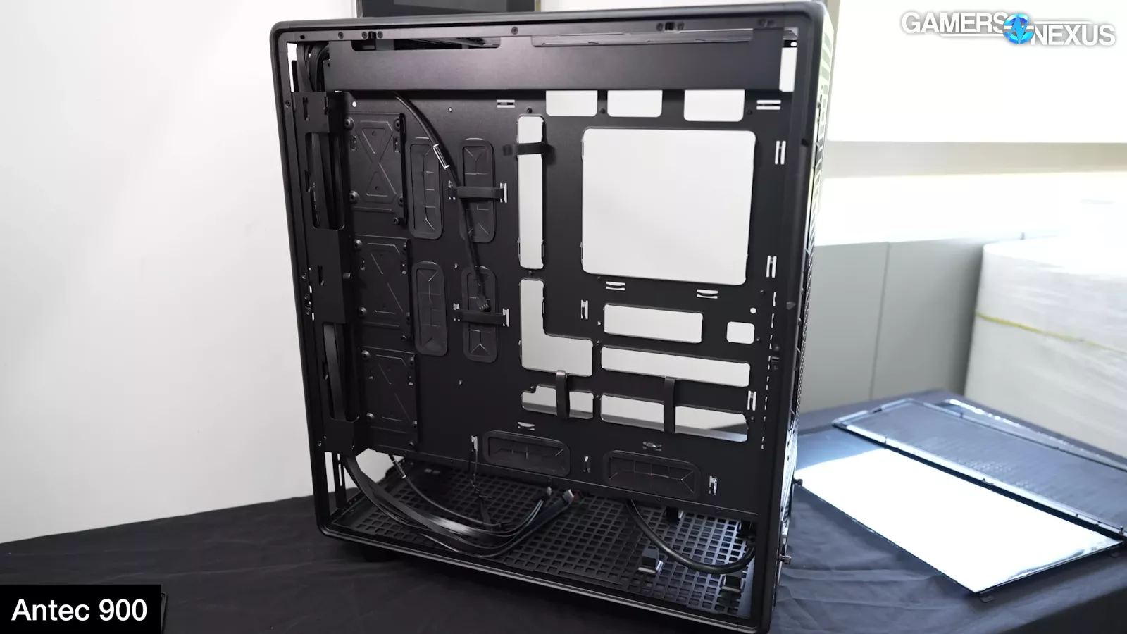 The FRAME 4000D Prototype is also worth showing here: The power board at the back doesn’t provide any logging functionality (like you might find with an Elmor Labs Benchtable), but does offer cable routing by funneling all the connectors through a rear-mounted PCB.
