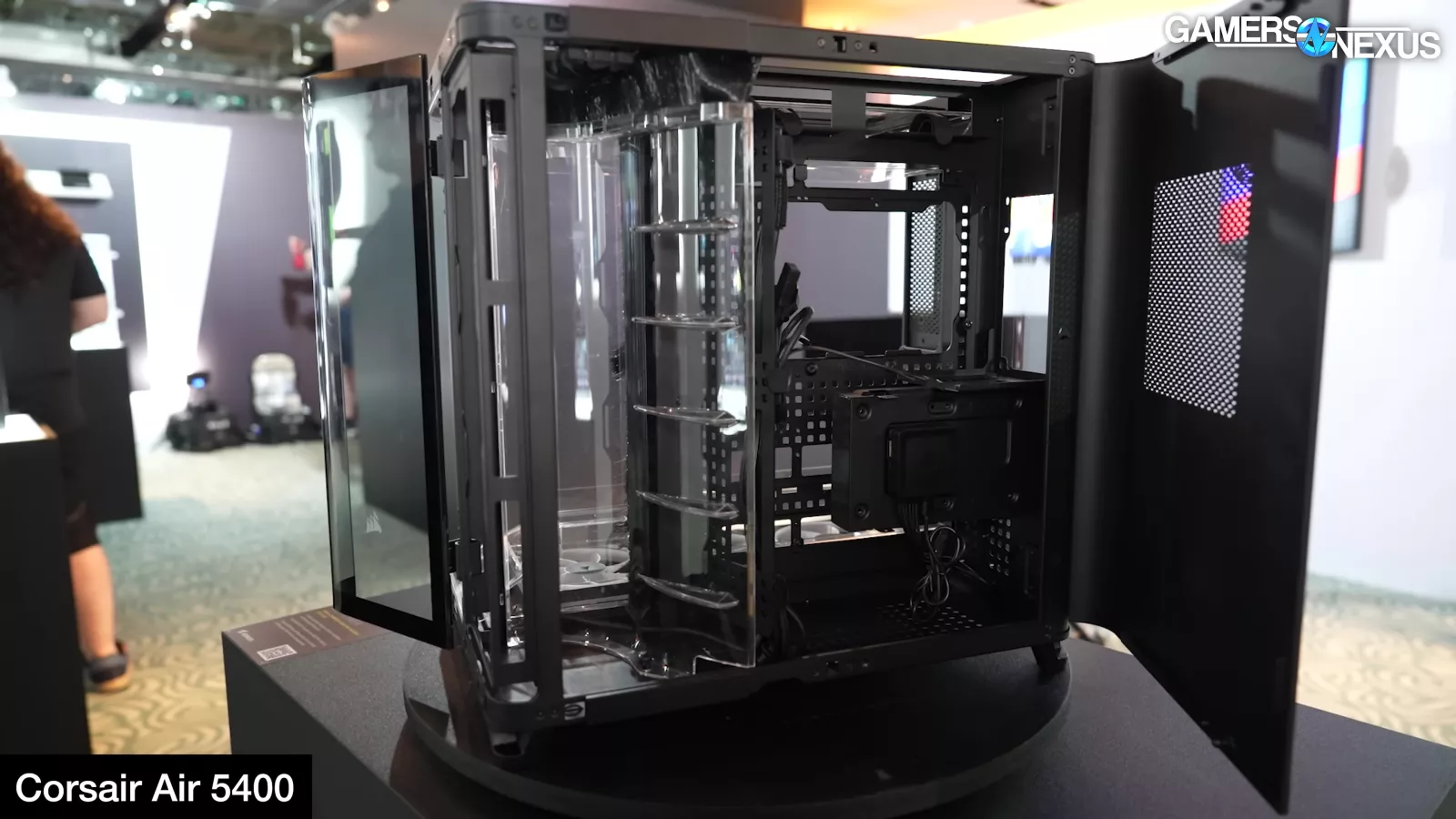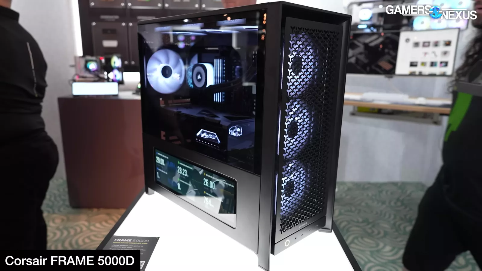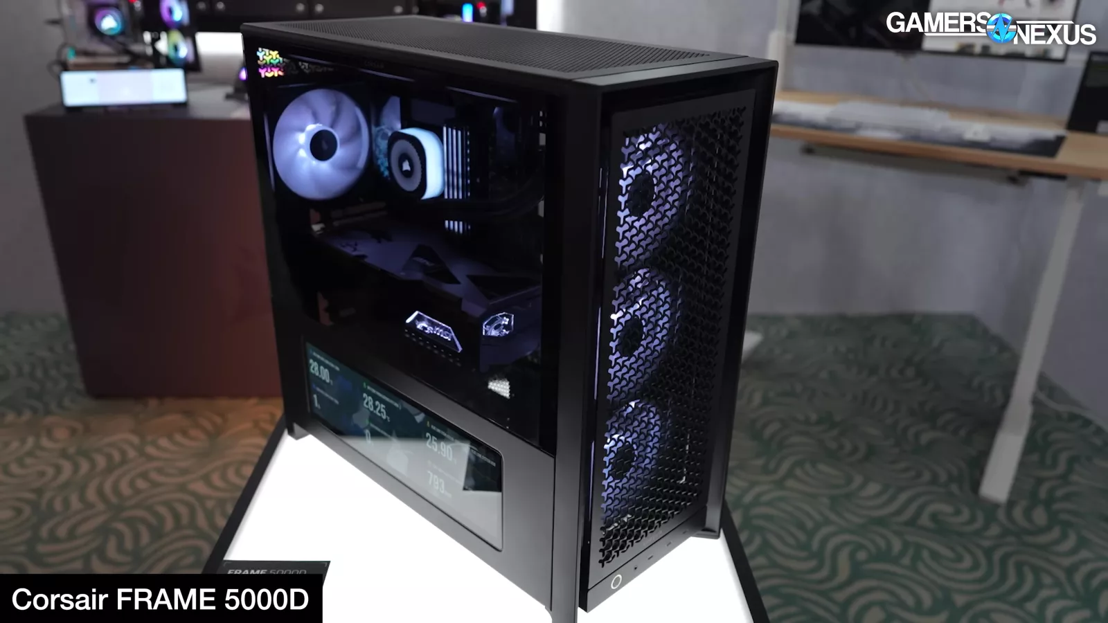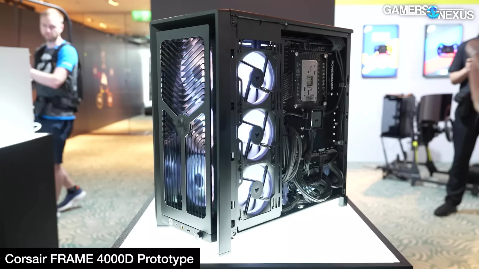 Corsair showed its new FRAME 5000D with LCD panel, its Air 5400 with effectively three chambers that completely isolate front radiator air from the rest of the system, and it had a prototype FRAME 4000D with a power board from Singularity PCs.