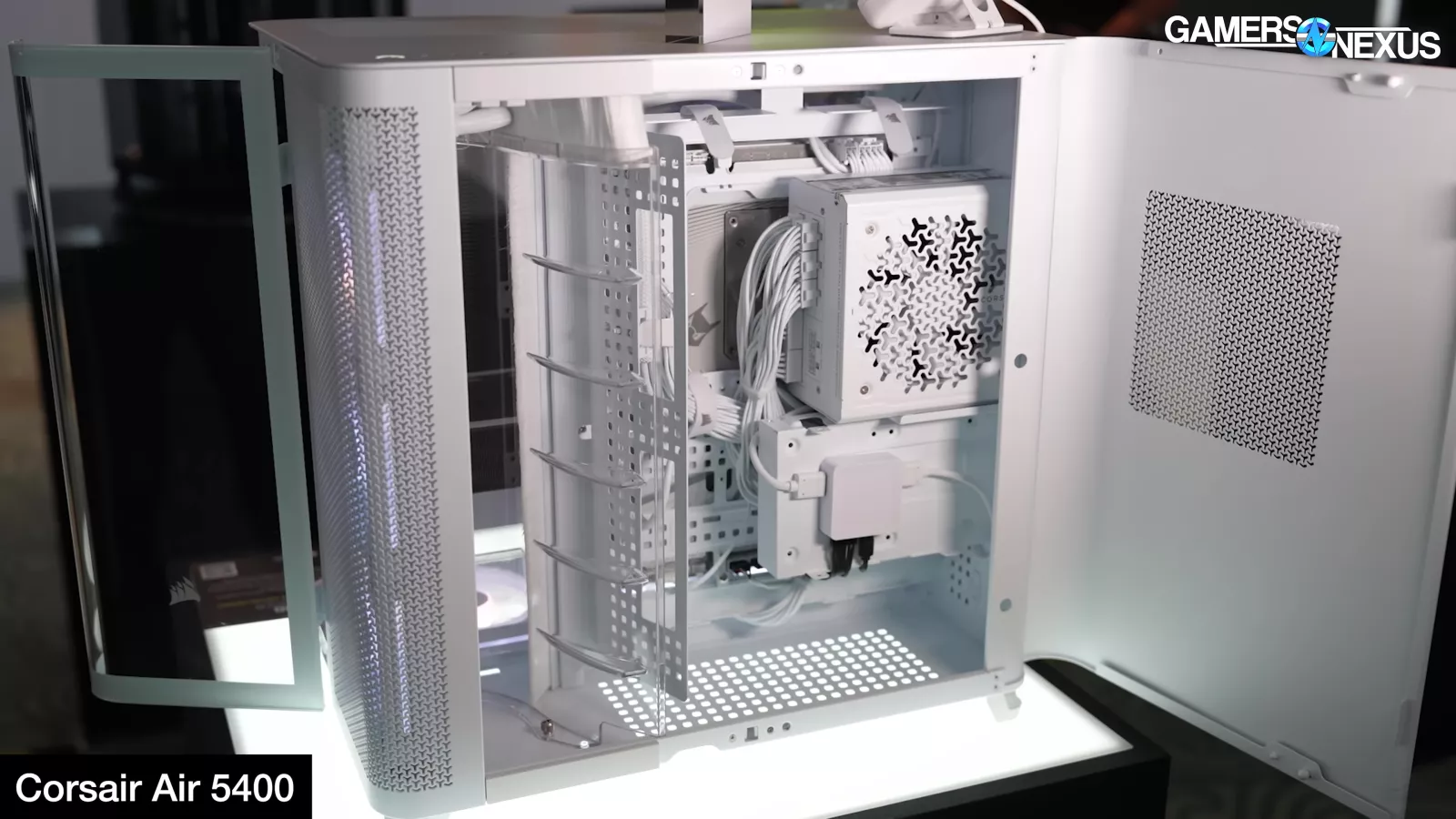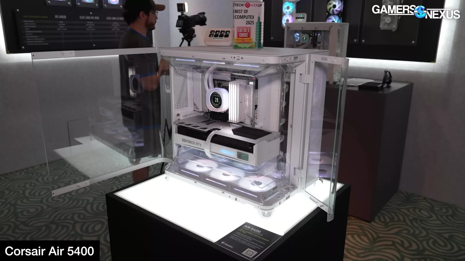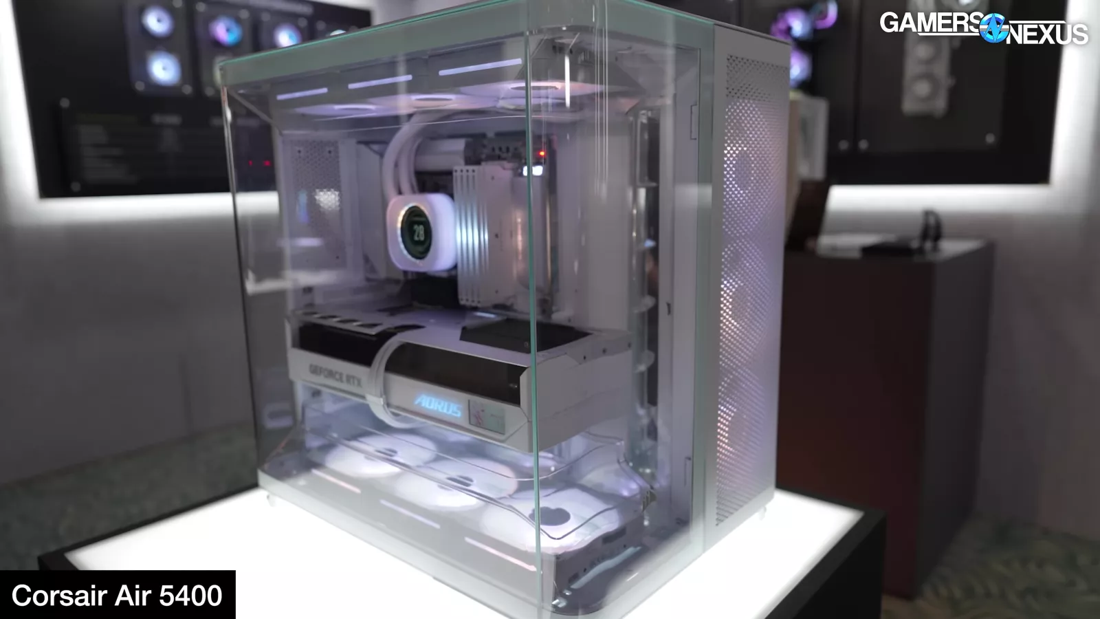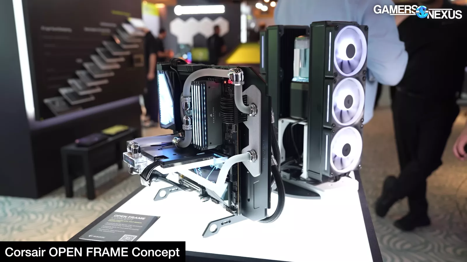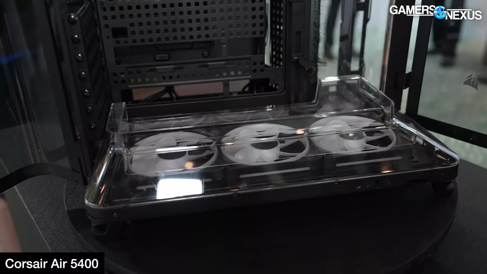Corsair showed its new FRAME 5000D with LCD panel, its Air 5400 with effectively three chambers that completely isolate front radiator air from the rest of the system, and it had a prototype FRAME 4000D with a power board from Singularity PCs.