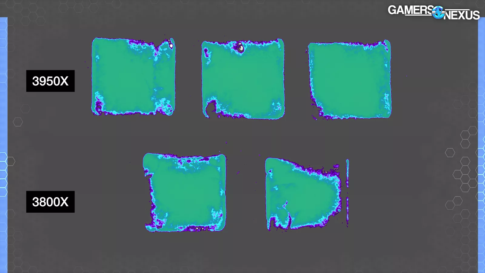 The 3800X maintains consistent central pressure on the CPU, but was generally more lacking at the borders. The second pass especially shows this, with a horseshoe pattern around the right edge.