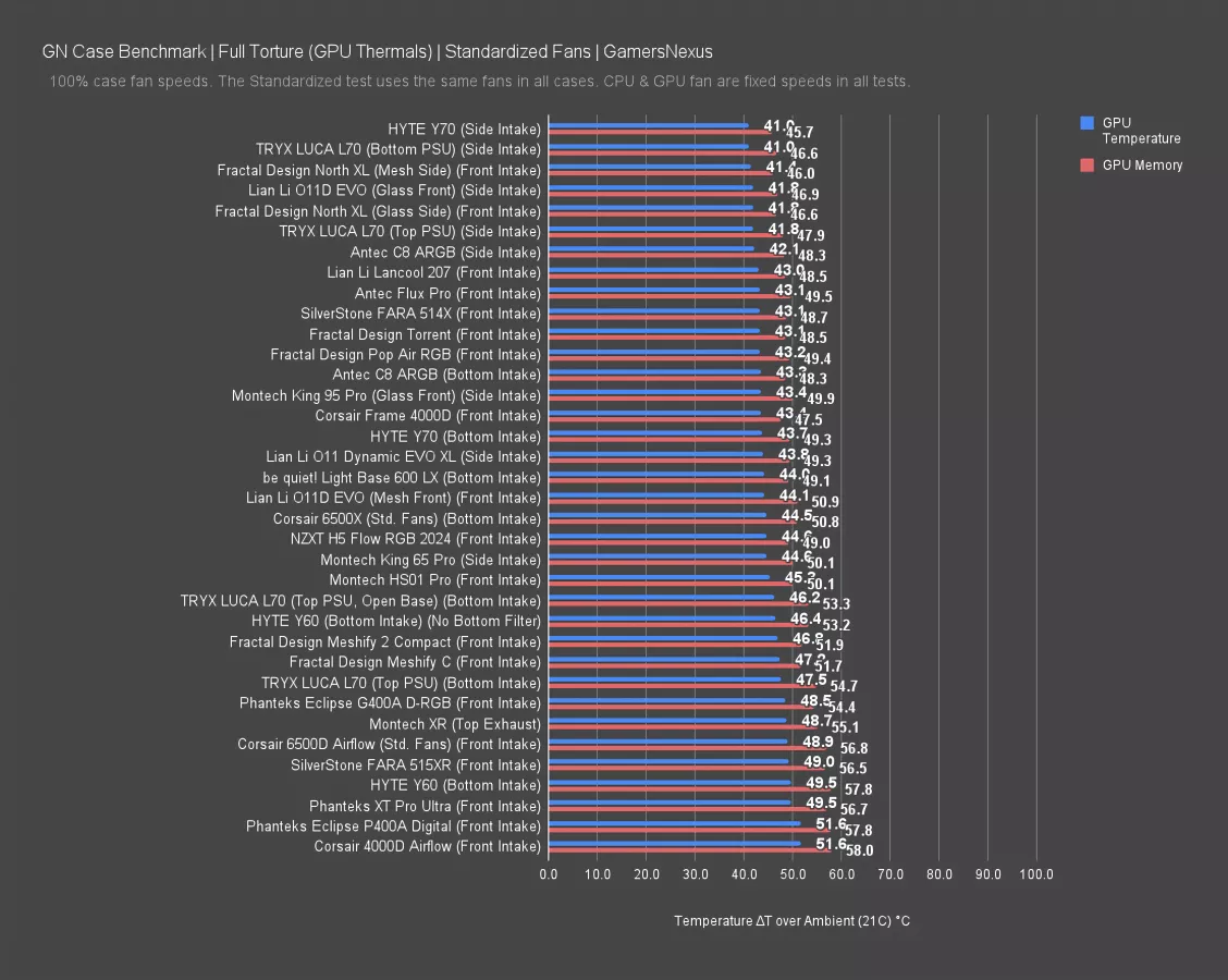 As a side note, GPU thermals with the 4000D Airflow were abysmal in this particular test relative to the rest of the chart. That differs from what we saw 5 years ago using our old test hardware, which demonstrates the value of retesting these cases now that we've switched to new components and a flow-through GPU design.