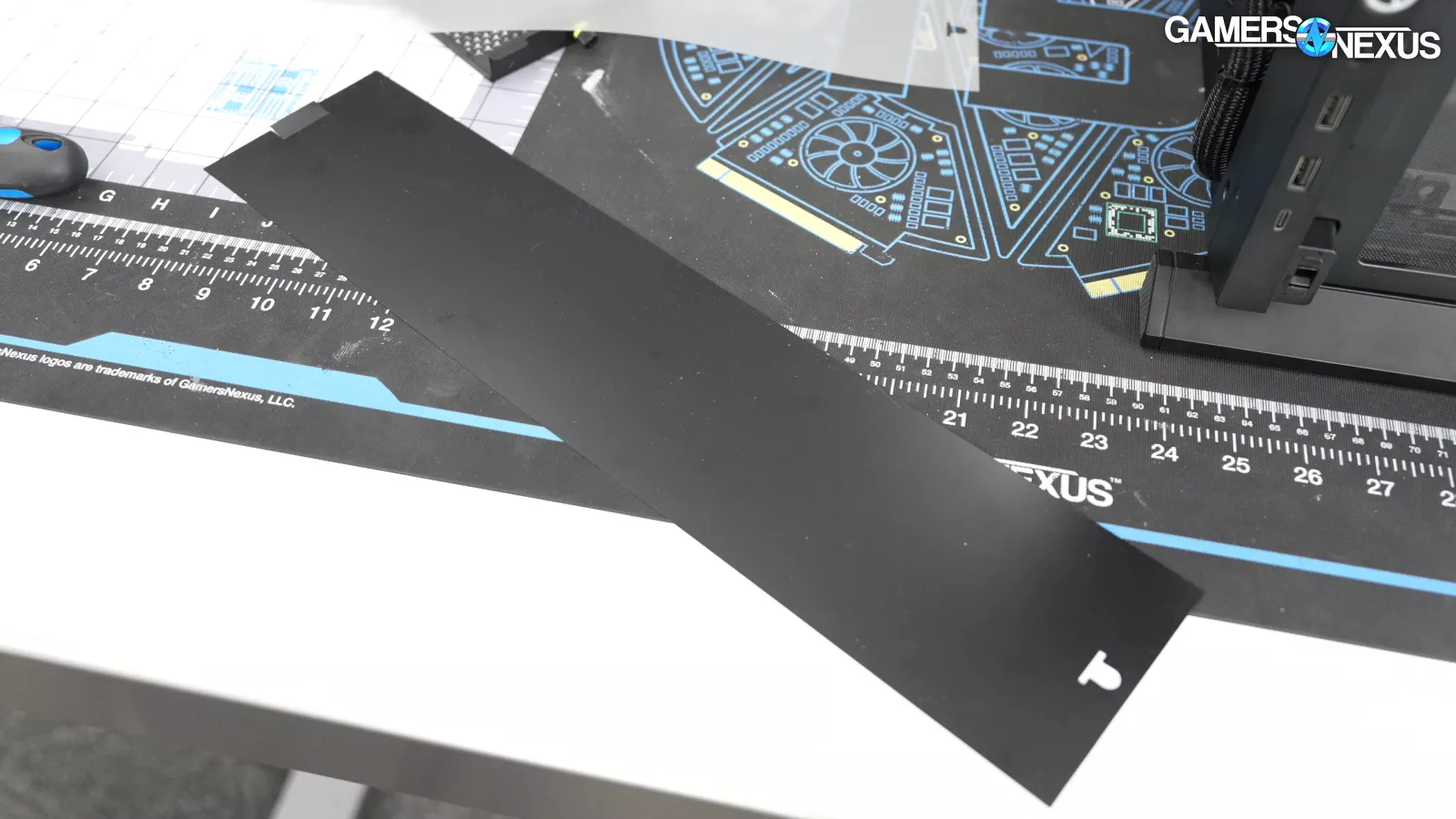 There's another, larger piece of black mylar in the kit, but the manual devotes less explanation to this one, simply saying that if you "don’t want your cables visible through the bottom mesh quarter-panel, swap the translucent insert for the color-matched blank-out insert included in the Accessory Box."