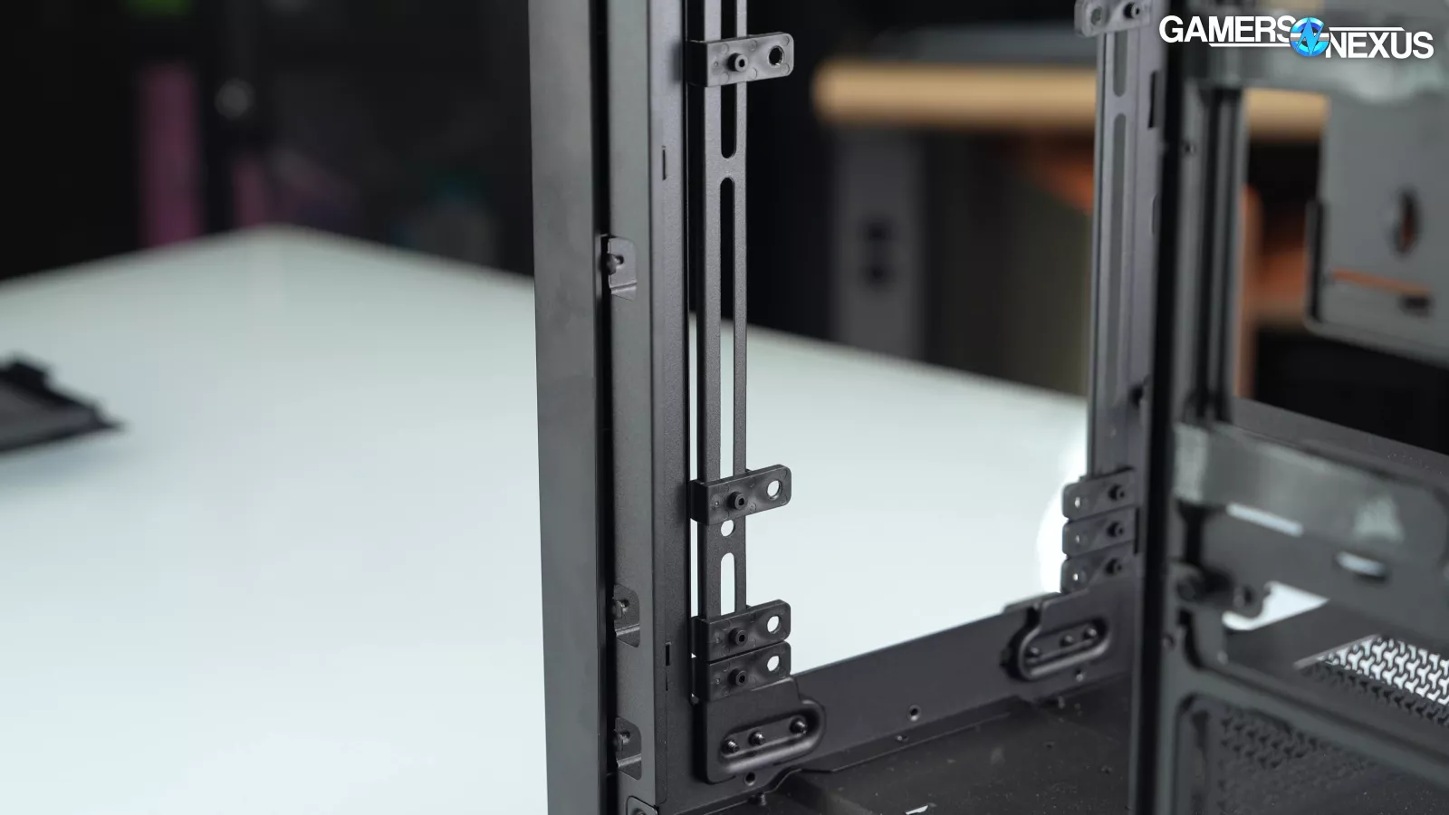 On the positives for build quality, the elaborate stamped 3D pattern on the front panel is much sturdier than it looks. We'll have thermal results later in this review, but the Frame 4000D's front panel appears more open than the 4000D Airflow's (watch our review) while retaining most of its rigidity.