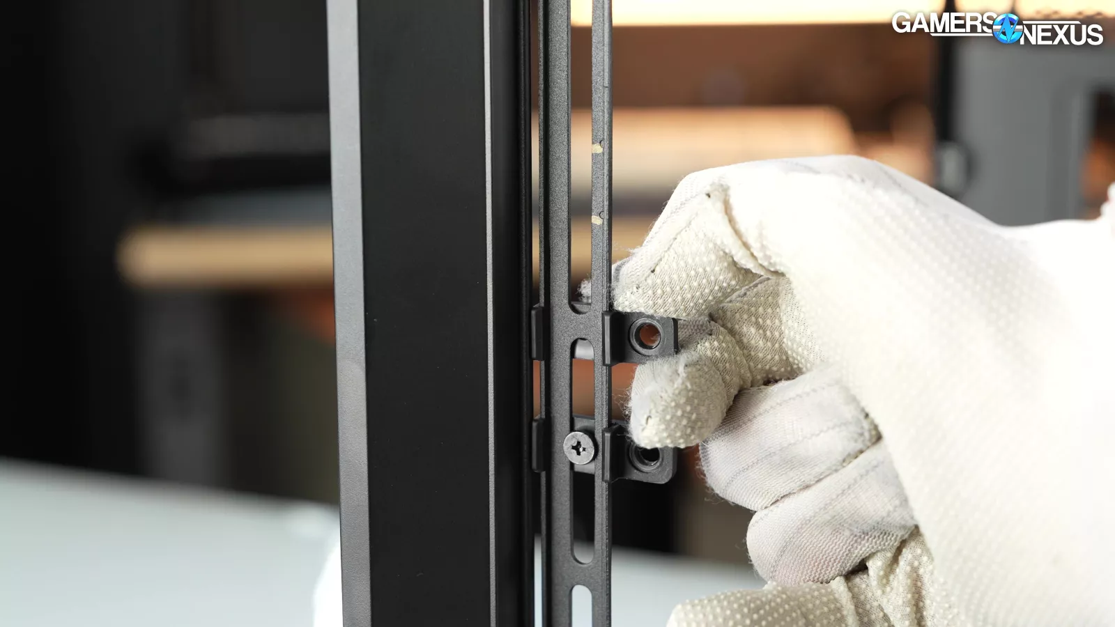 The default location of the GPU anti-sag arm is on the cable cover, too far forward to benefit anything except the longest GPUs, especially if the cable cover is shifted to its forward position.
