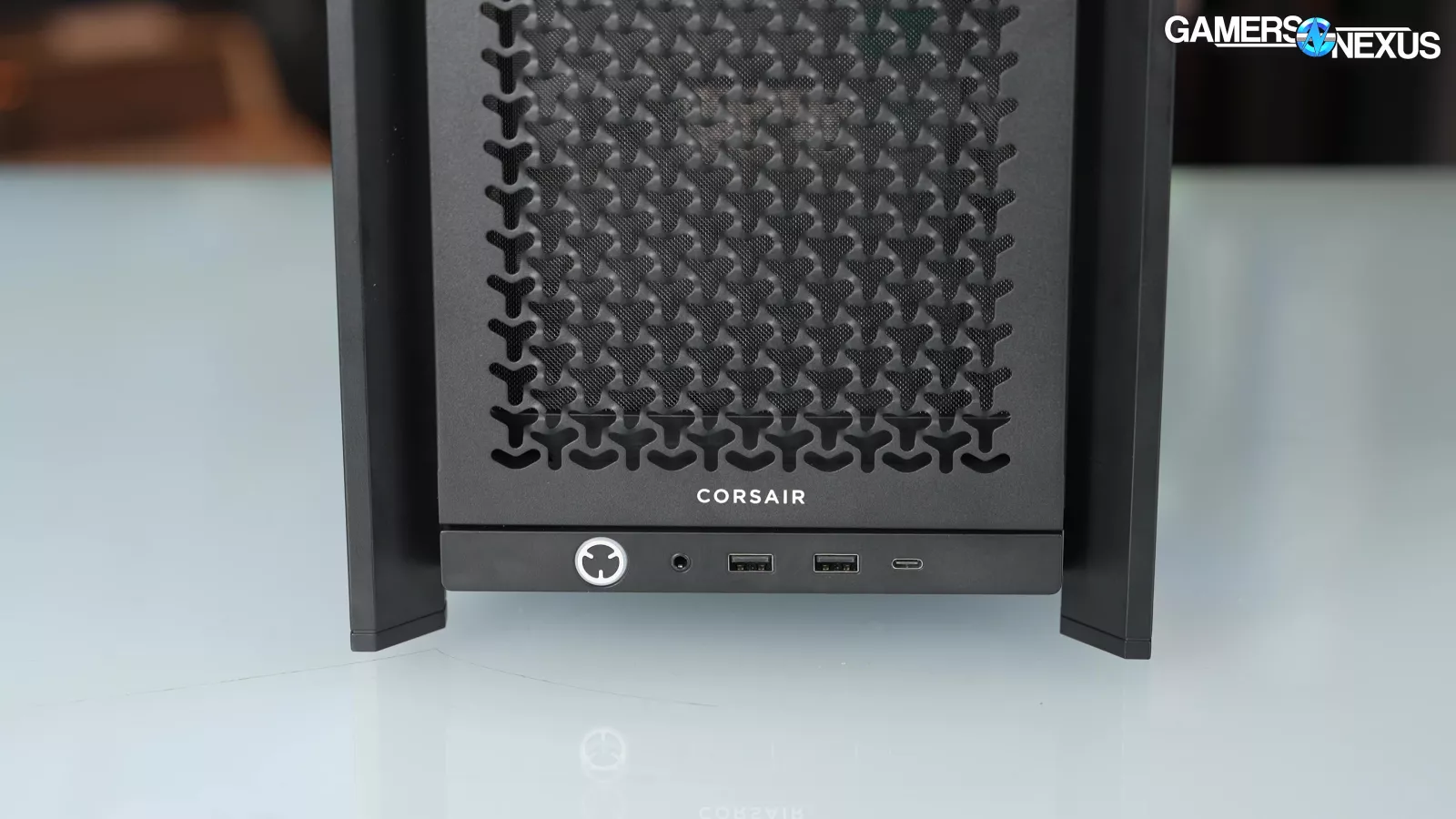 The Frame 4000D is interesting because Corsair has gone all out with the gigantic holes in the front panel: functionally, they're close to having no front panel at all.