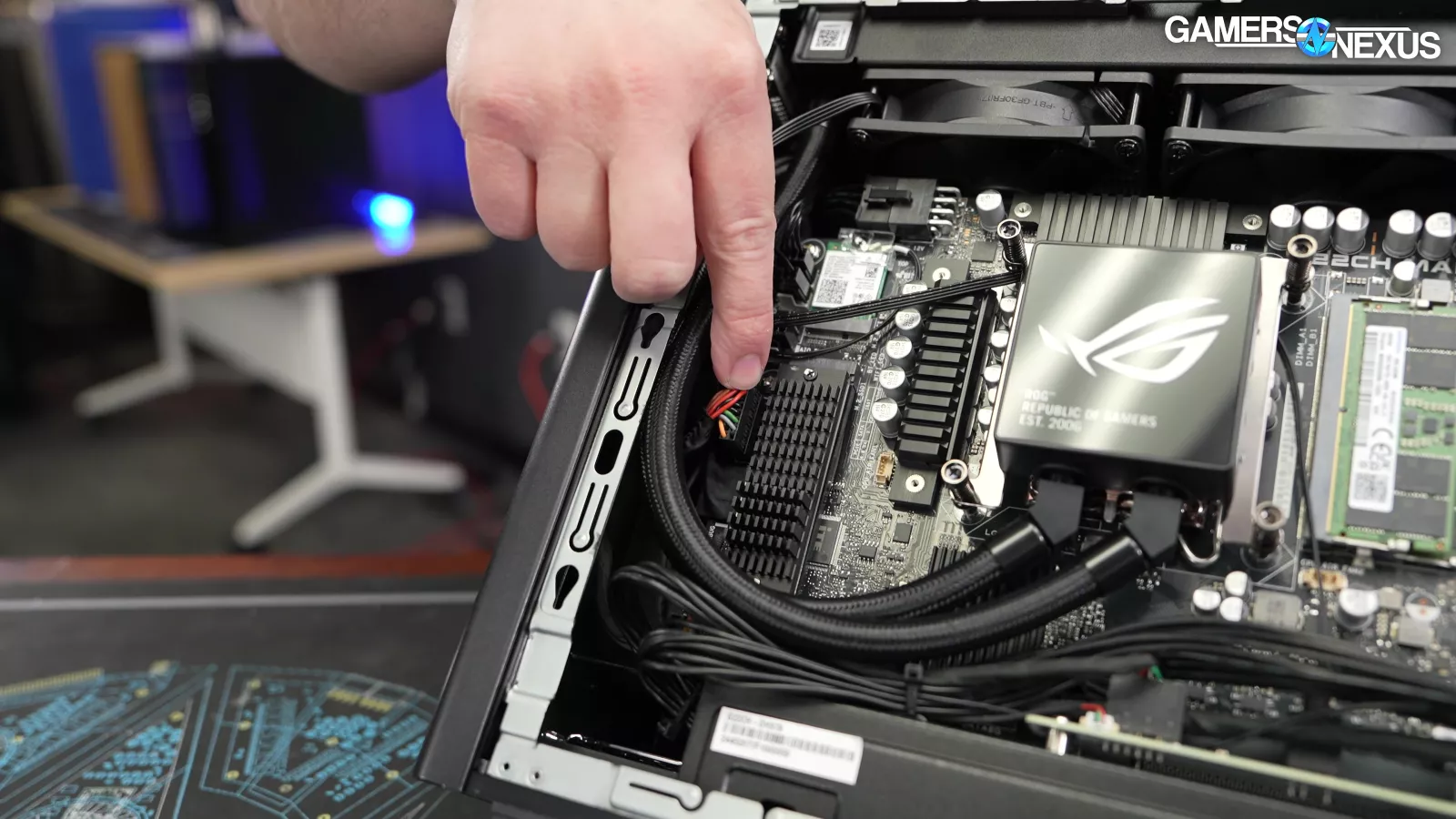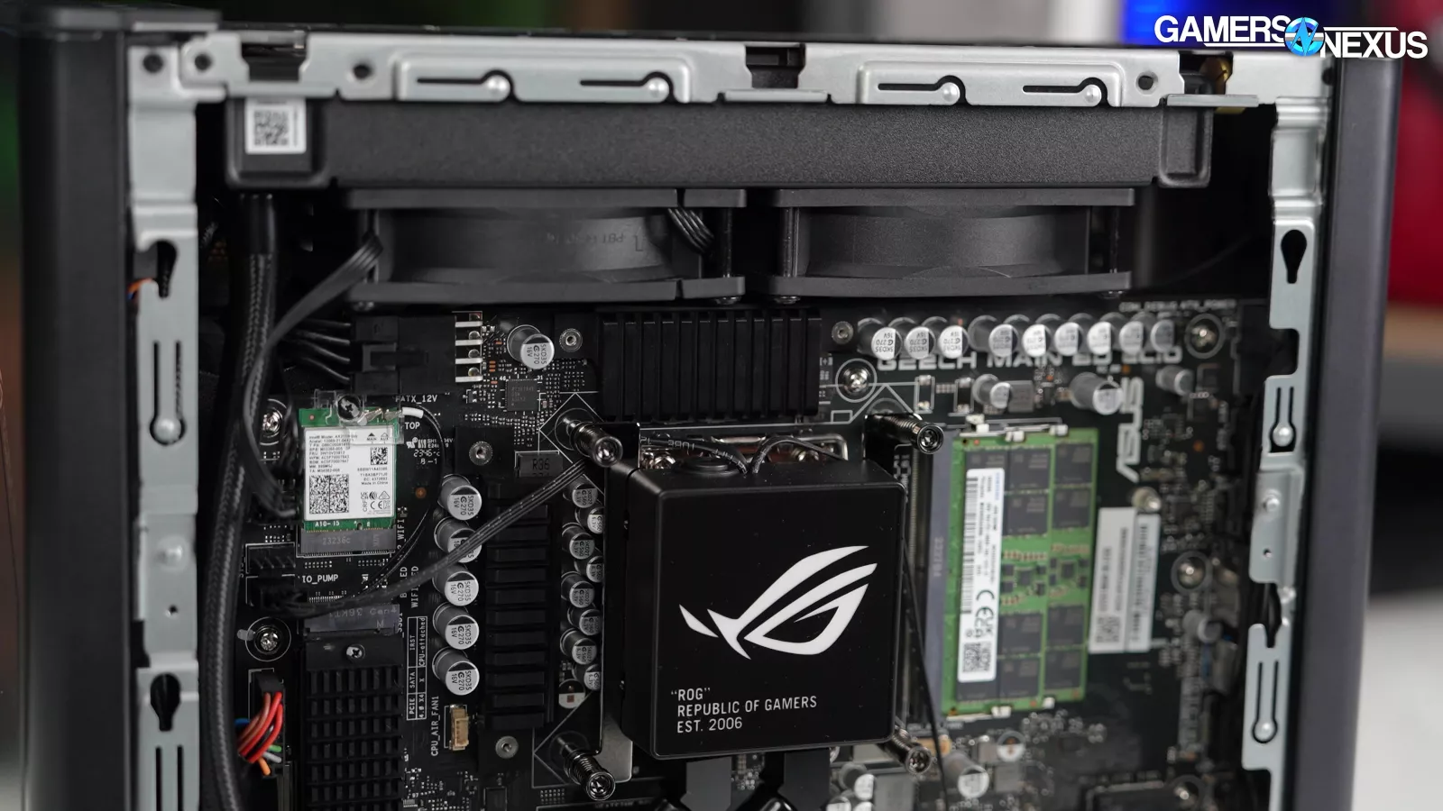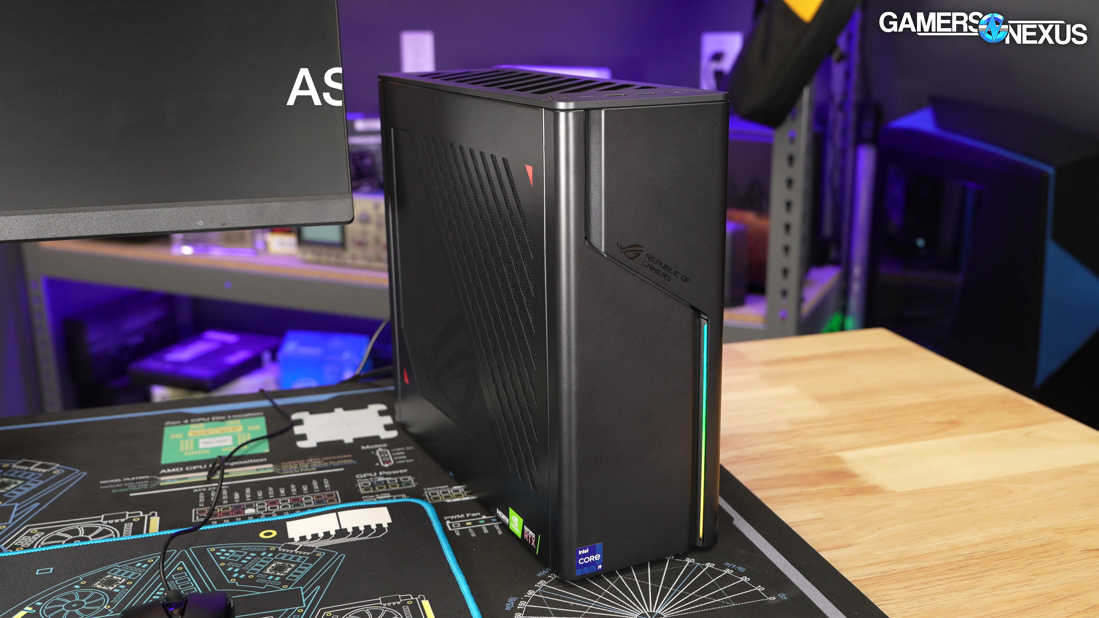 ASUS ends up with a premium of around $850-$875 over DIY, depending on day to day price fluctuations. That’s not as bad as the Corsair i500 (watch our review), but is still way beyond what’s reasonable, and is insulting considering the shortcomings of functionally turning the 14900K (read our review) into a lower-spec part.