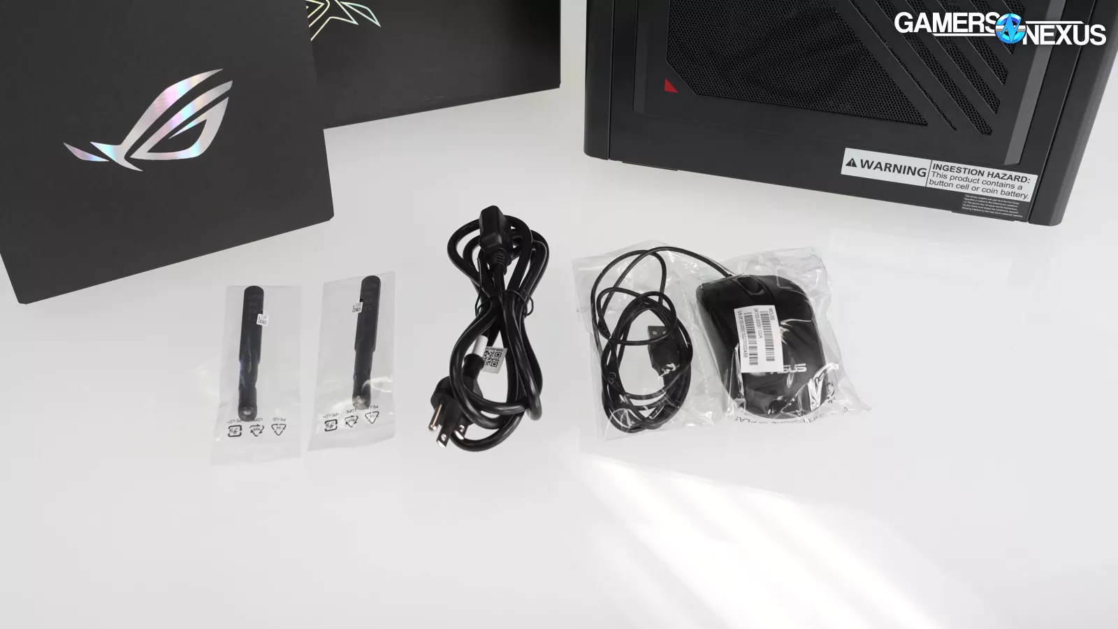 Moving to accessories: The accessory bundle has a super basic mouse and keyboard that aren’t good, wireless antennae, AC power cord, and the extra NOT-tempered-glass “plexiglass” panel. There’s also a box of paperwork with an installation guide, a very large don’t-eat-battery sticker, and panel replacement instructions.