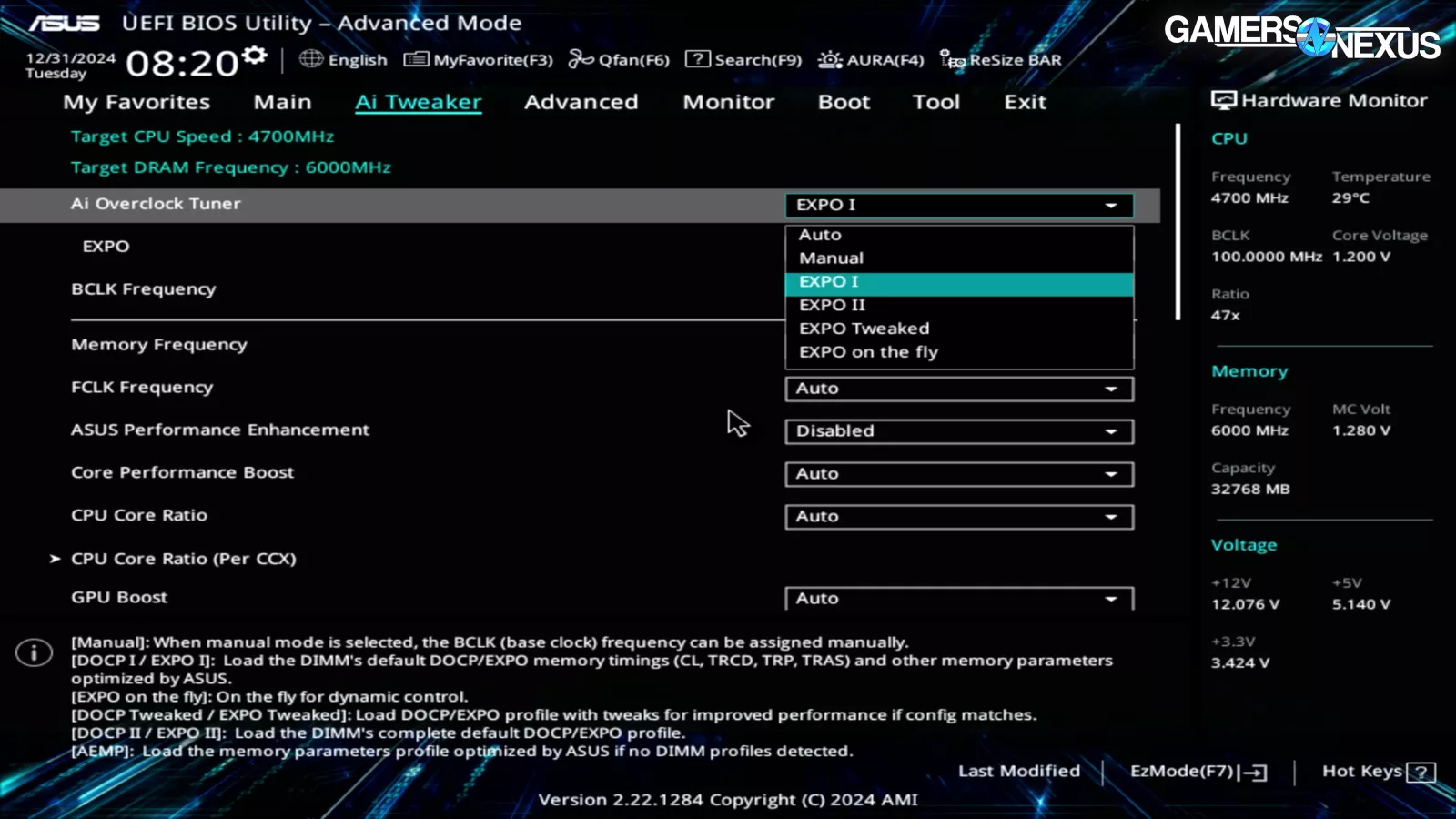 The EXPO memory profile was enabled, ASUS’ performance enhancement was disabled, and almost everything else was set to auto. Cyberpower has a clean BIOS setup that we agree with overall. The only change we’d like to see is disabling the Armory Crate bloatware installer, which is unfortunately a default setting. But EXPO and disabling ASUS’ enhancements are both correct.