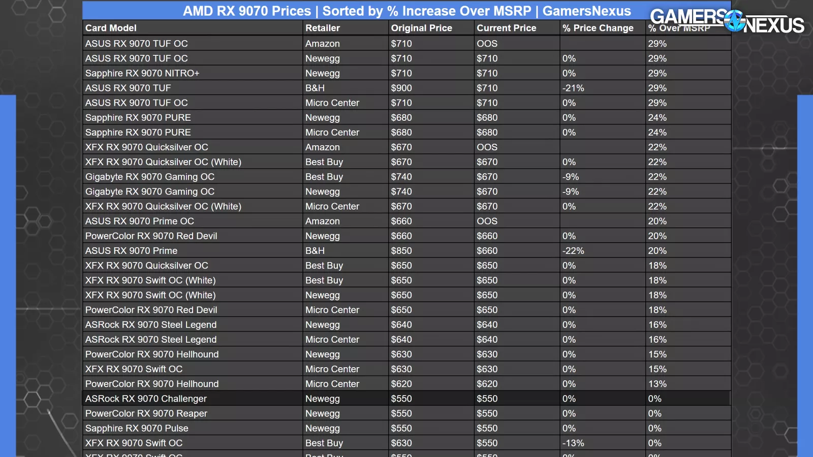 The ASUS RTX 4090 Strix – regarded as the most expensive “normal” 4090 – sold for 25% over MSRP. That’s a high-end GPU with a bunch of unnecessary, expensive bells-and-whistles from a company that largely sells its brand image. Tons of these AMD 9070 XTs (and some non-XT) are way across that percentage threshold, again including some at 42% over MSRP. That’s a bigger price hike than the Strix 4090.