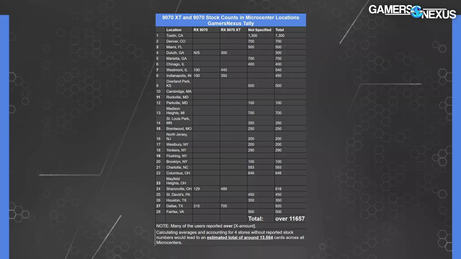 That puts us at 12,000 units for a localized store in the US and 5,000 units for a UK-based store. Speaking with someone at AMD off-record, GN learned that AMD and its partners shipped “tens of thousands” of units to the North American market alone, with most of those being 9070 XT GPUs.