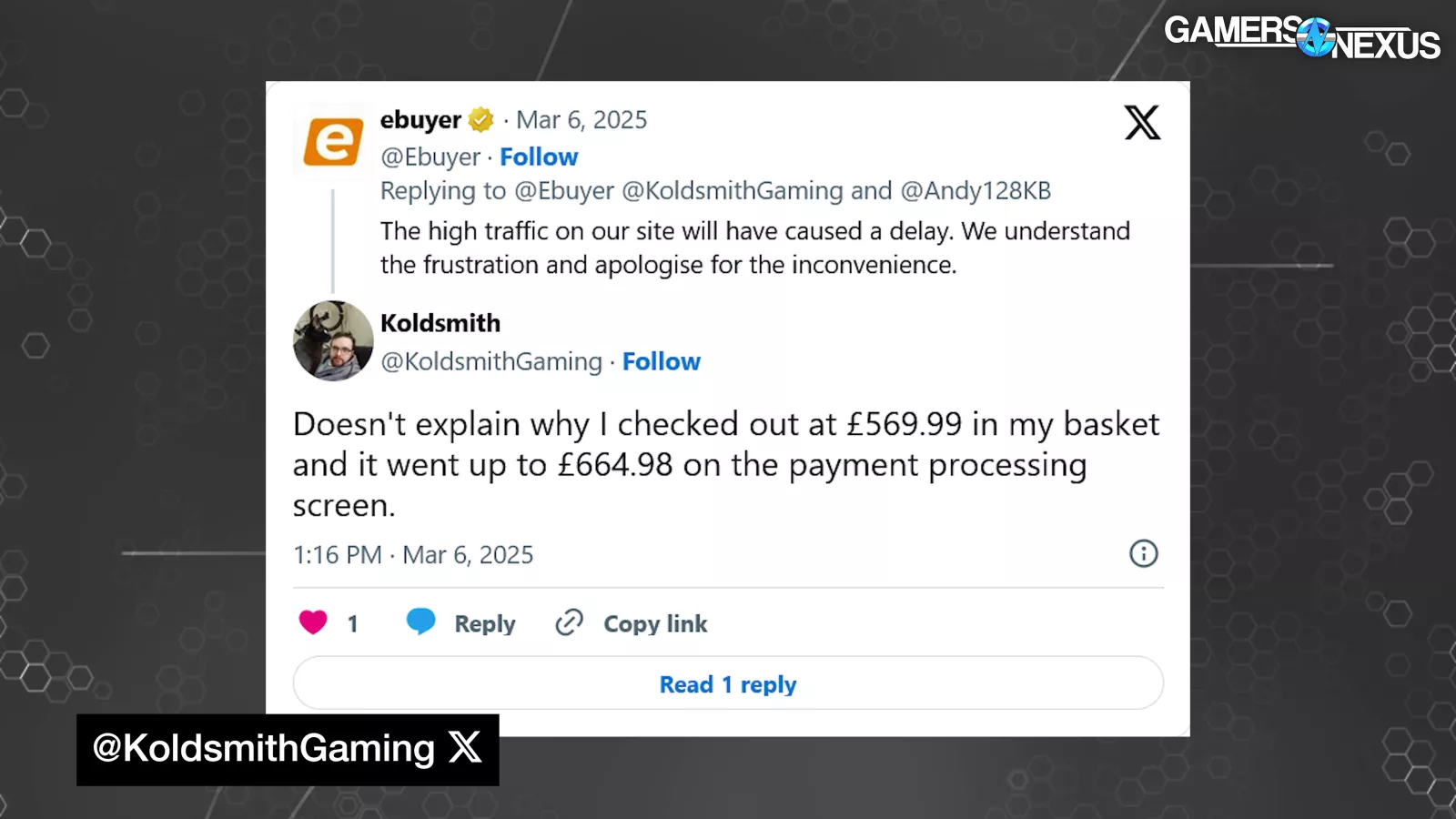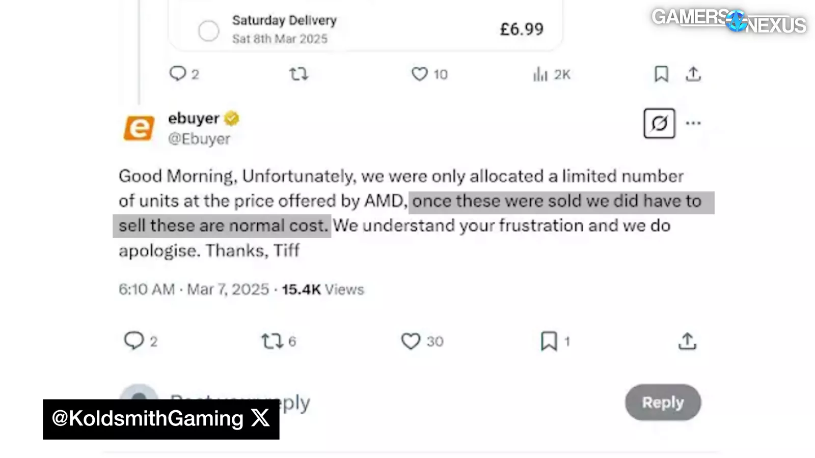 eBuyer repeated its previous statement explaining the finite number of MSRP cards and added, “once these were sold we did have to sell these are normal cost [sic].” This would seem to indicate that it’s not simply from taxes being added after the fact.