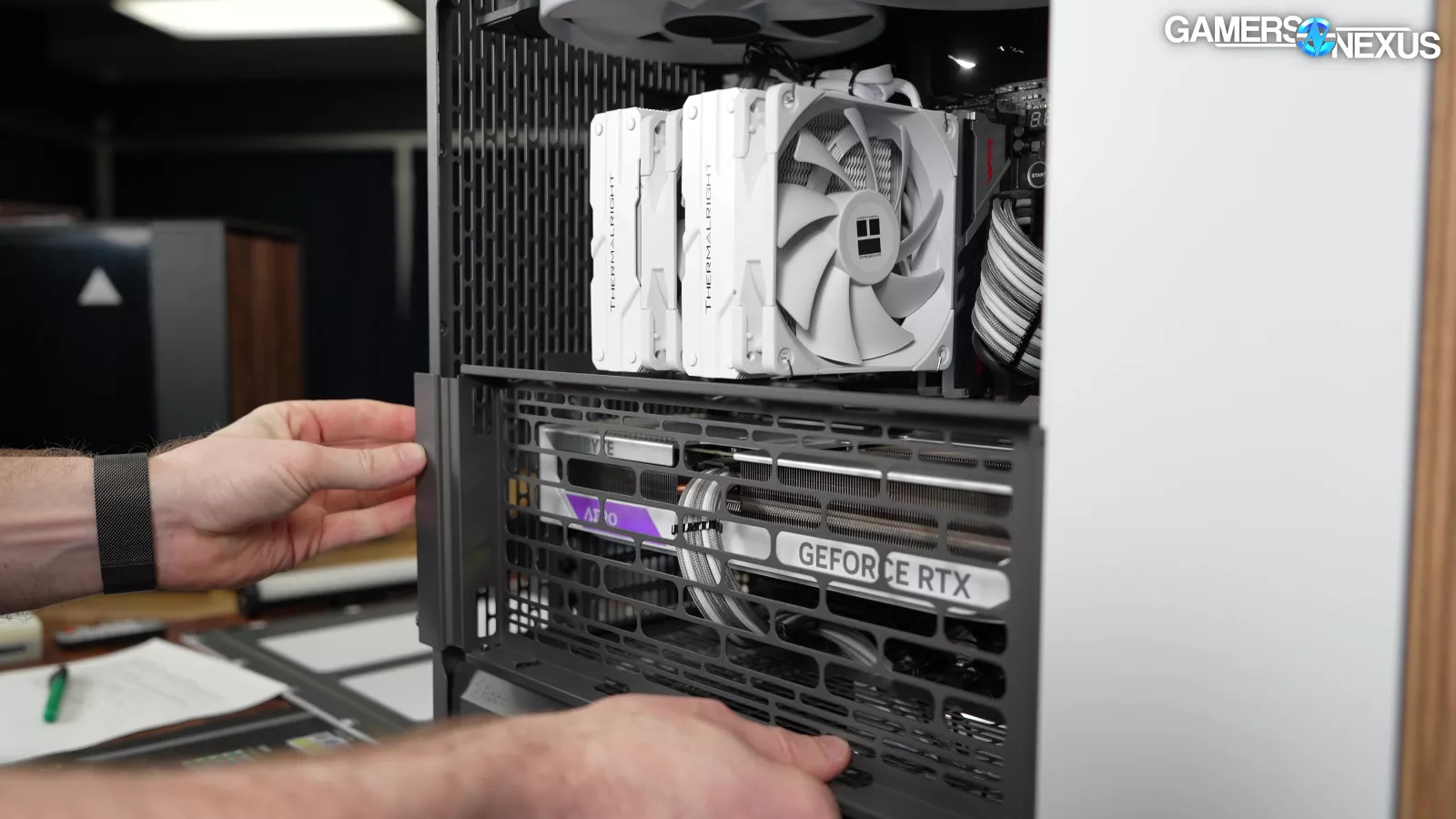 The XL also reduces the problems with clearance that the original North's side fan bracket (exclusive to the Mesh version) had with both CPU and GPU coolers.