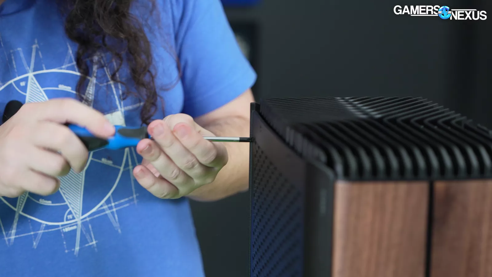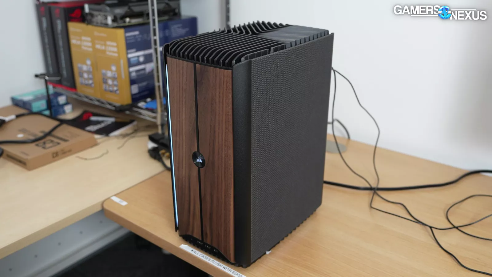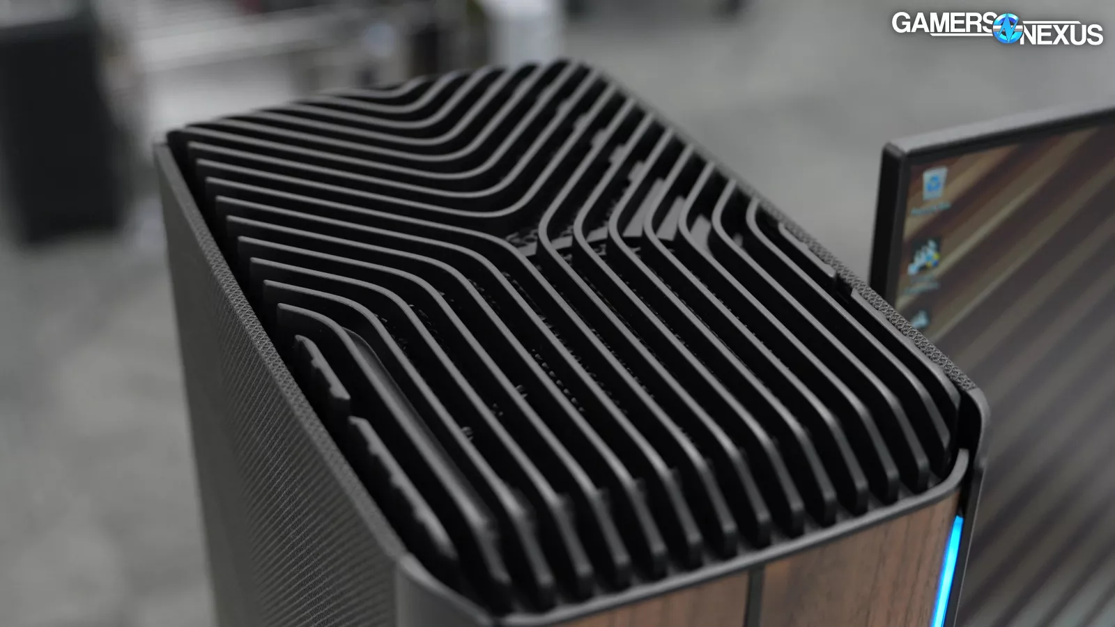 The top and bottom of the case have really bulky aluminum fins. The top gets warm during operation, but the metal isn’t leveraged for cooling in the way it should be. This was a missed opportunity in such a customized build as this is.