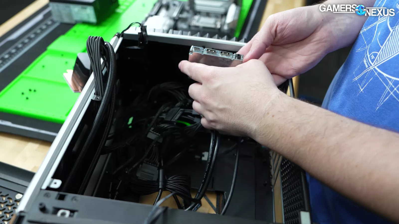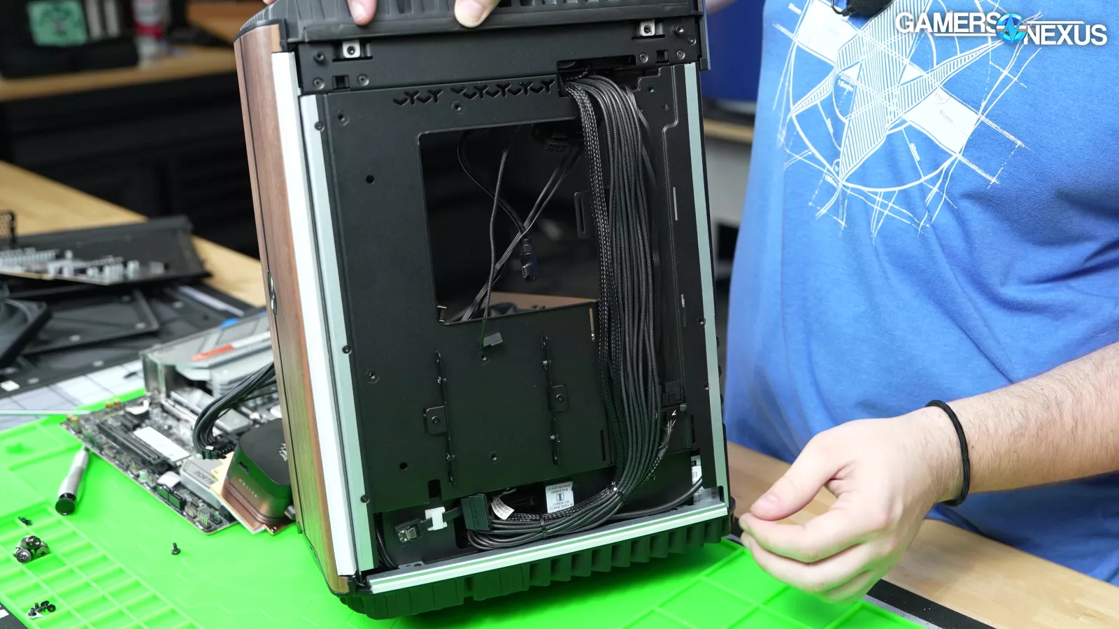 Removing the PSU, we can see some odd, massive screwed-in steel plates that hold the cables in place. Corsair is investing effort into the wrong areas to manage its cables.
