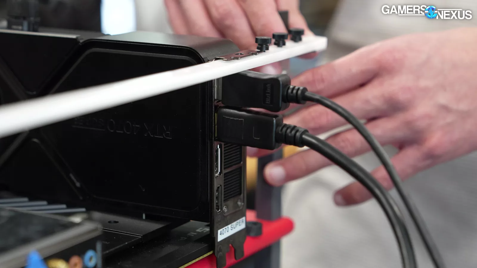 For non-50 series users who are confronted with game crashes on NVIDIA’s latest drivers, we’d first recommend swapping the order of your display outputs on the GPU itself. We don’t fully understand how effective this fix is yet, but it’s simple and worked for us. We’d also suggest swapping cables to HDMI, which is not ideal, to see if that changes anything as a stopgap.