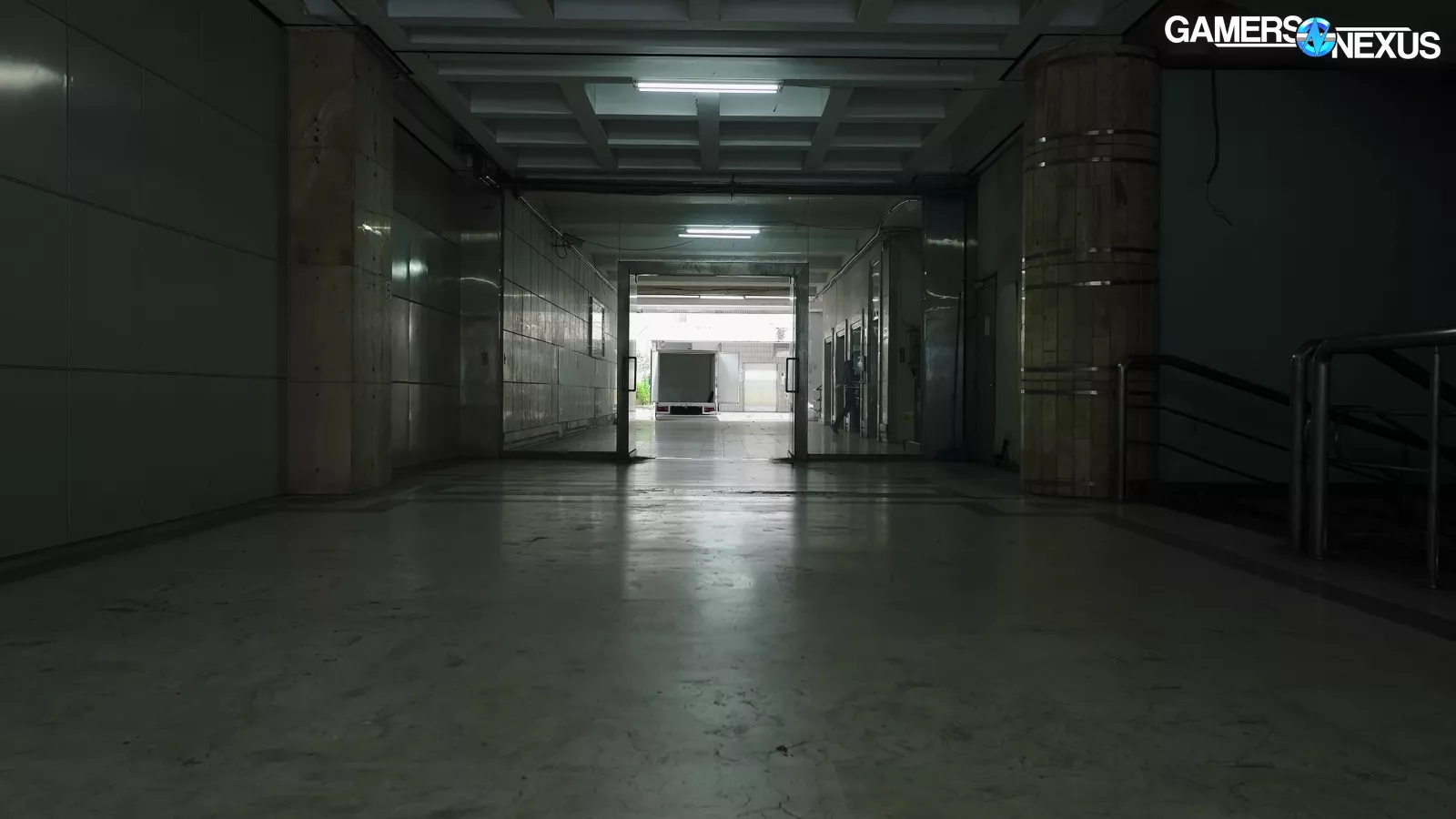 The hallways leading to the advanced, ultra-clean, bright facilities we will see in this tour are deceptively dark, to the extent that we thought we were in the wrong place when we first arrived.