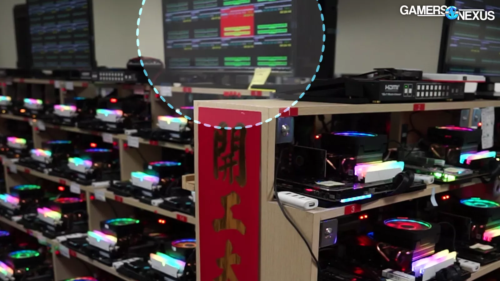 This is the burn-in lab. And here, V-color tests every single stick of memory that it makes. This one room contains over 200 available test beds for memory.