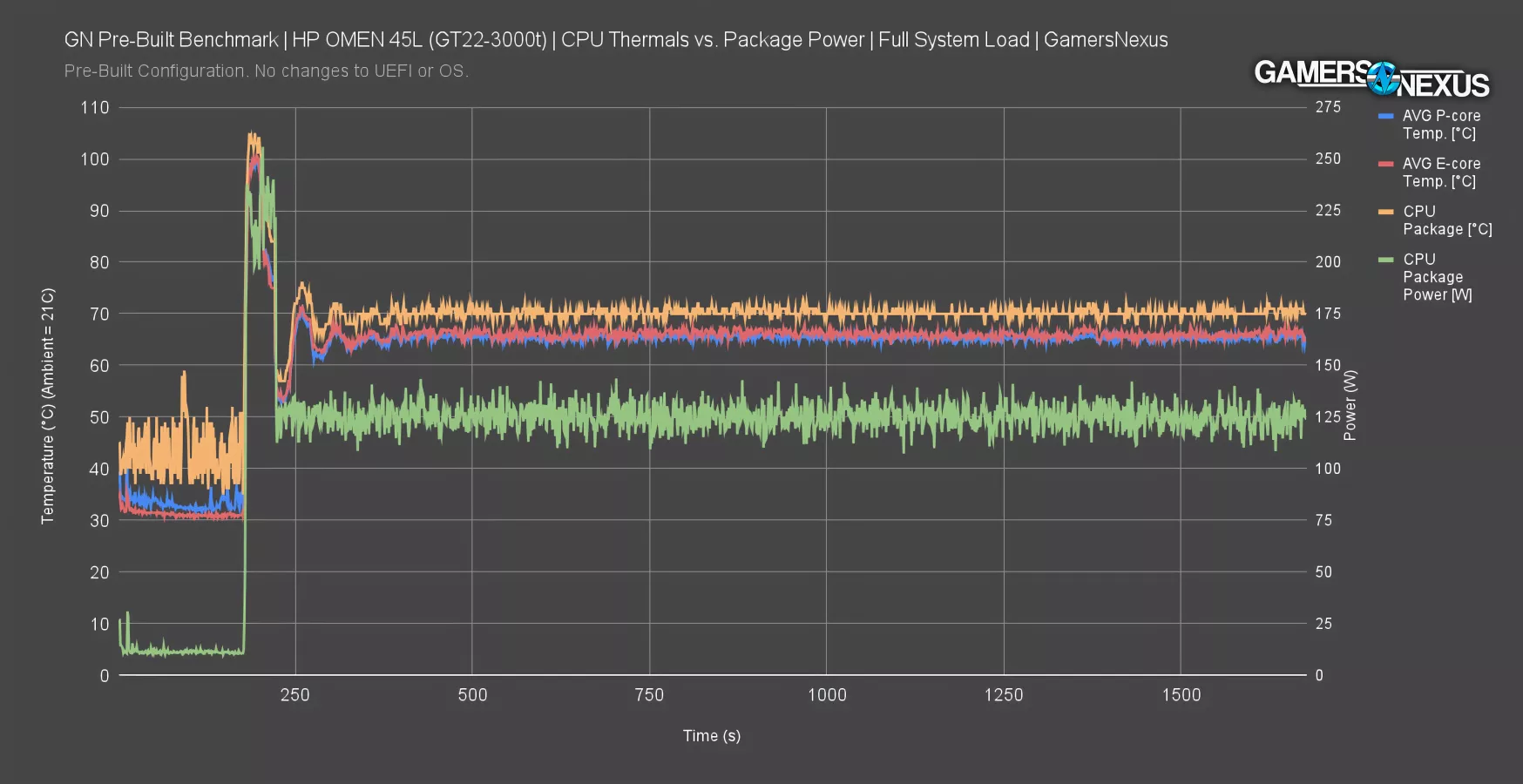 HP’s GPU cooler design seems like the most competent aspect of the entire build, but it’s benefitted by the CPU underprovisioning work.