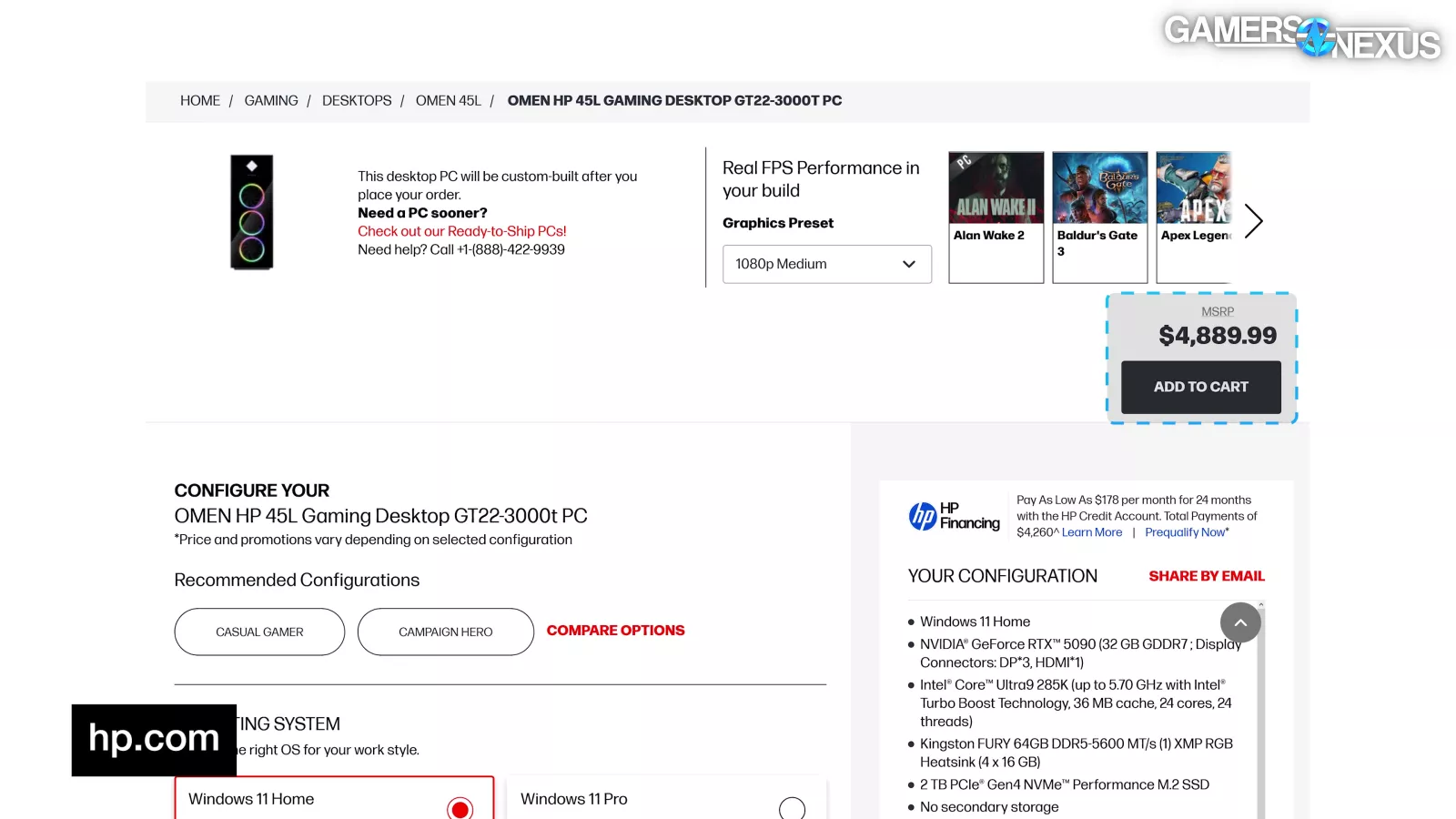 HP OMEN 45L (GT22-3000t) Pre-built | Part and Price Breakdown | GamersNexus