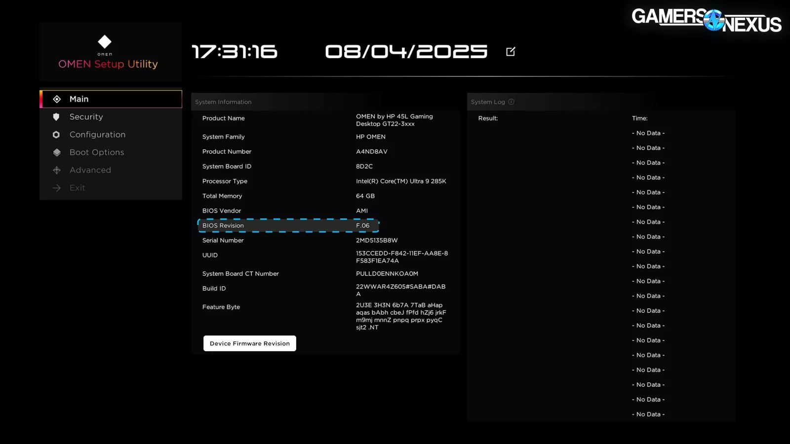 The BIOS for the OMEN 45L is version F.06, released in December 2024. The support page doesn’t show any updates between then and July 2025, but the version number jumping to F.11 makes us think that there were intermediary revisions that have since been removed.